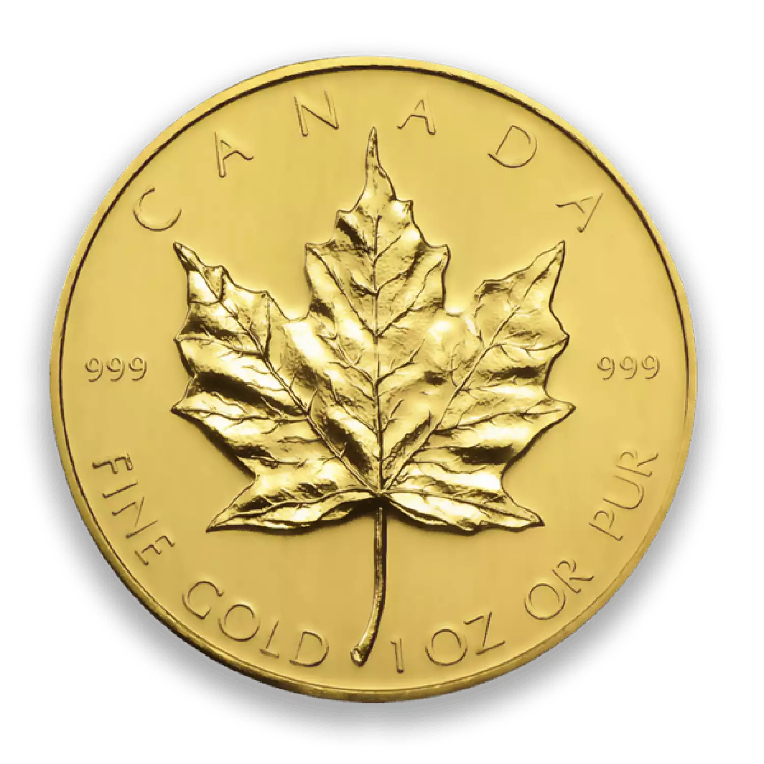 Expand your collection of bullion coins by buying the beautiful 1 oz Canadian Gold Maple Leaf - 999 (1979-82) online from us. The gold price is updated on our website every minute.