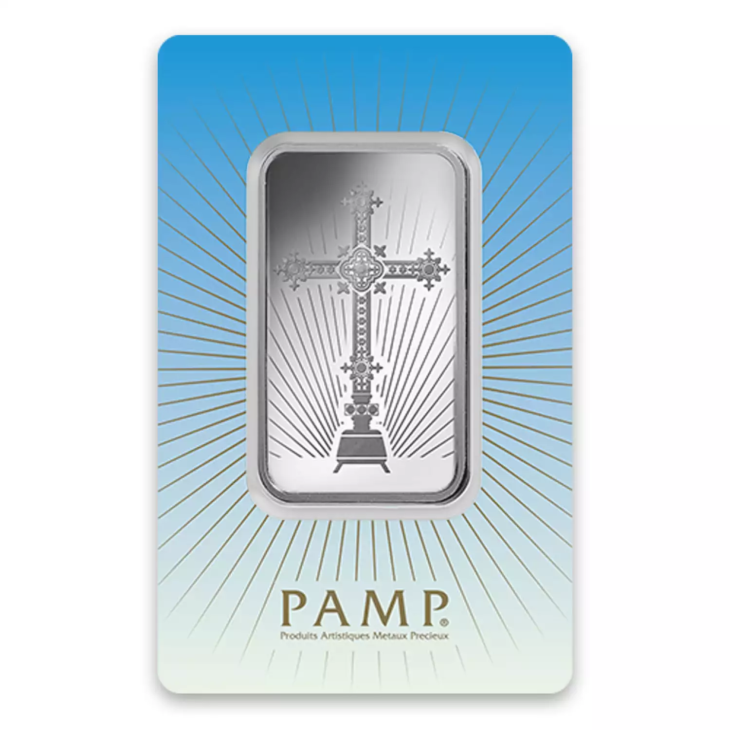 Buy the stunning 1 oz PAMP Silver Bar - Romanesque Cross today from us online! The current silver price is updated on our website every minute.