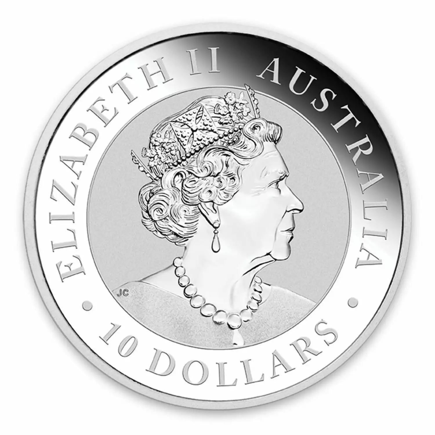 The 2019 10oz Australian Perth Mint Silver Kookaburra is the 28th design from the Kookaburra Series. Each 2019 10 oz Australian Perth Mint Silver Kookaburra silver coin is composed of 10 troy ounces of 0.999 fine silver and features a face value of $10 AUD. The reverse of the coin features the all-new 2017 Kookaburra design. Silver bars and silver coins may tend to tarnish over time depending upon the environment they are stored.