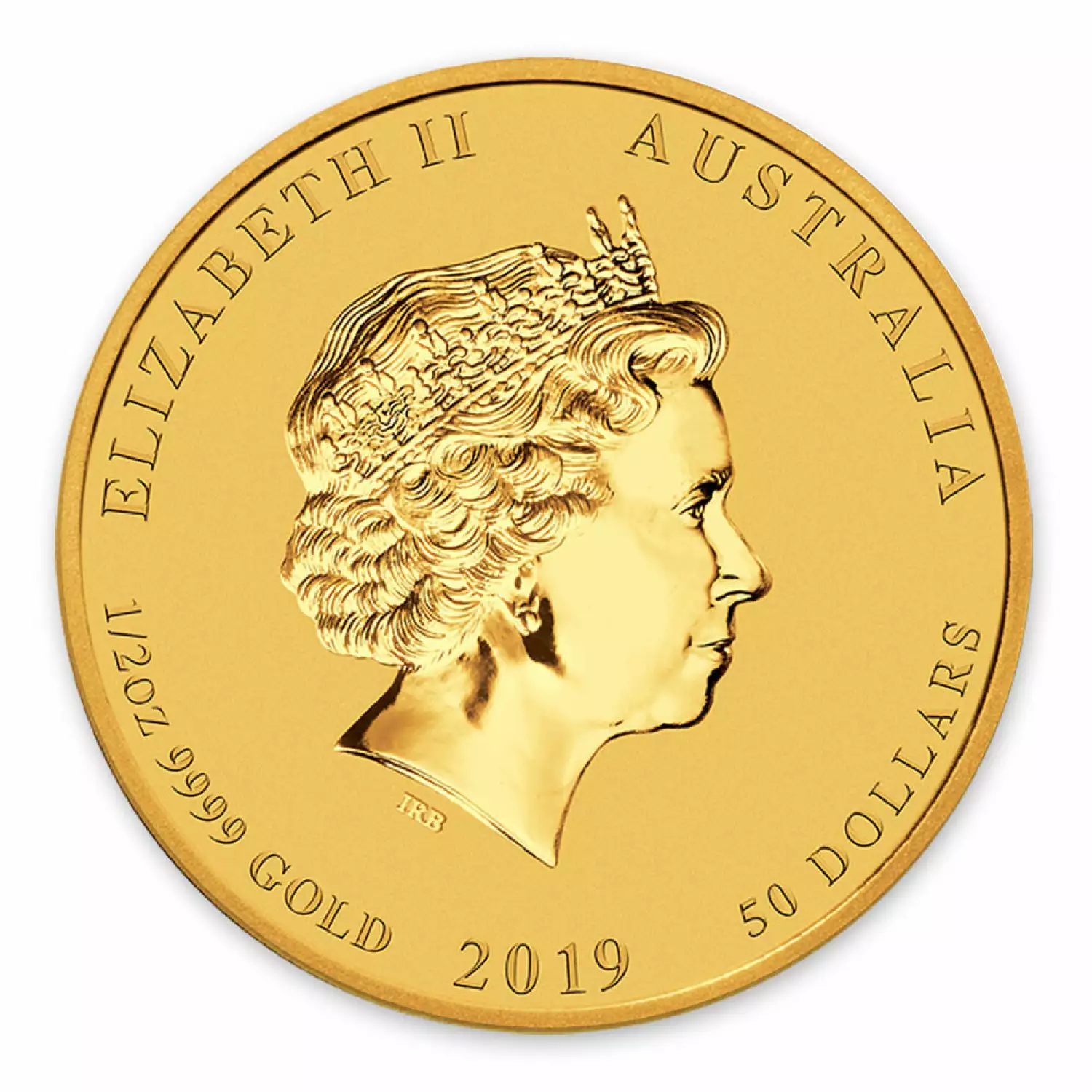 The 2019 1/2 oz Australian Perth Mint Gold Lunar II: Year of the Pig is the second release of the Perth Mint Lunar Series. This bullion coin is composed of 1/2 Troy ounce of .9999 fine gold.