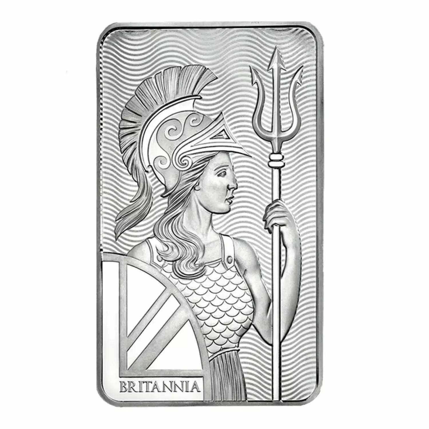 The 100 oz Silver Britannia Bar is the largest bar in the Britannia range by Royal Mint. It contains 100 troy ounces of .999 pure silver.