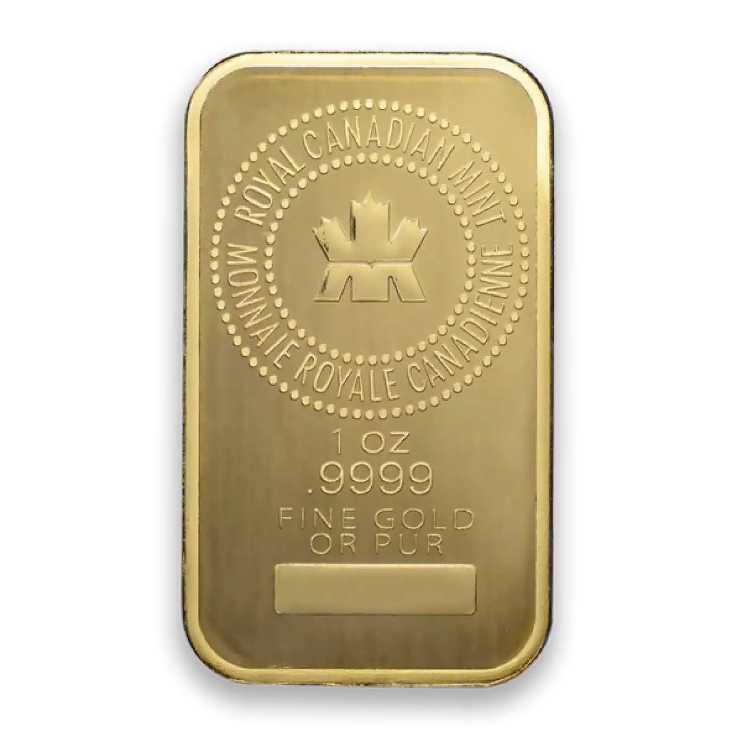 Minted by the Royal Canadian Mint, Royal Canadian Mint 1 oz Gold Bar highly respected and recognized gold bullion bar globally and contains 1 Troy Ounce of .9999 fine gold. This bar offers superior security features. 1 oz Royal Canadian Mint Gold Bars are known for their products’ quality feel and finish and their beautiful designs. Made with world-class minting technology, these bars offer excellent investment value and are a great addition to your portfolio.