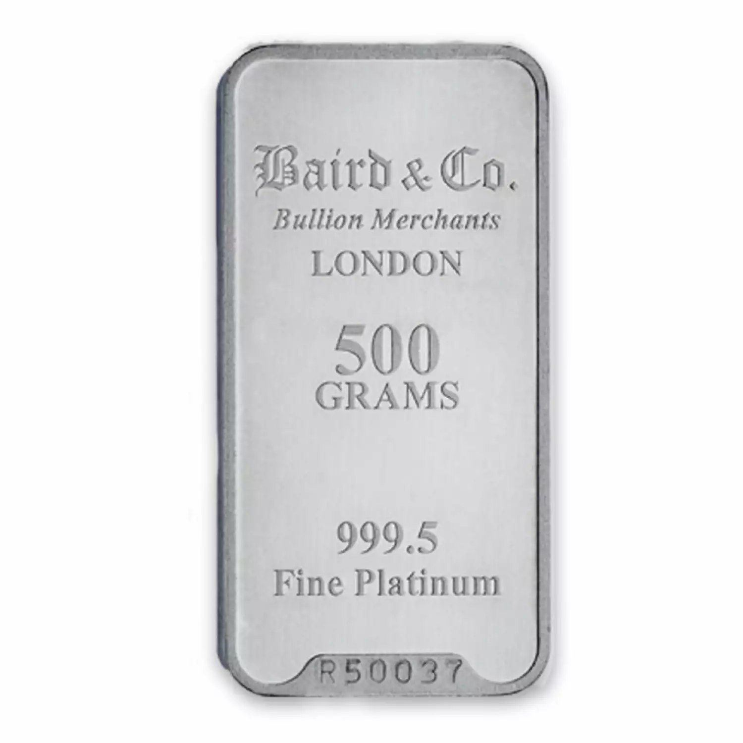 Platinum bars are available in three different types i.e. cast, minted or extruded. Manufactured by Baird Co in the UK, each 500g Baird Co Platinum Minted Bar contains 500 g of .9995 fine platinum. These stunning platinum bars appeal to both investors and collectors for their iconic designs. Platinum bars and platinum coins may tend to tarnish over time depending upon the environment they are stored.