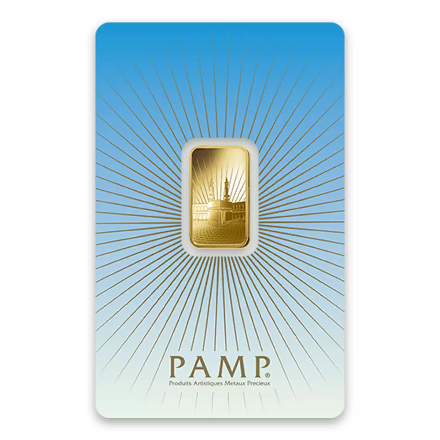 Looking for one of the reliable bullion dealers to buy the magnificent gold bars online? Buy the high-quality 5g PAMP Gold Bar - Ka `Bah. Mecca today from us online! You’ll find the recent gold price on our website.