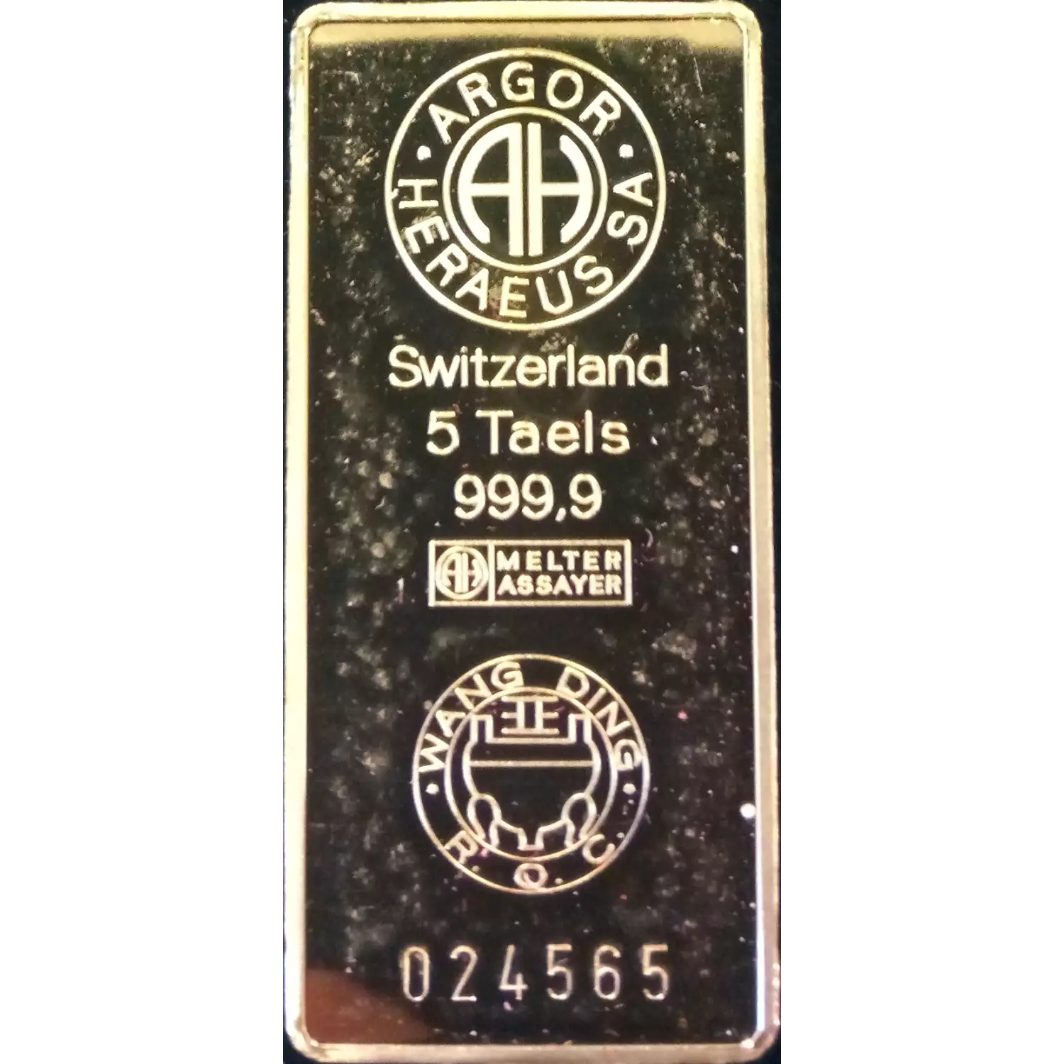 5 tael gold bar is 6.02ozt of 99.99% pure gold. Tael is a measurment of the far east. It is a Portuguese word for the Malay "tahil" meaning "weight".