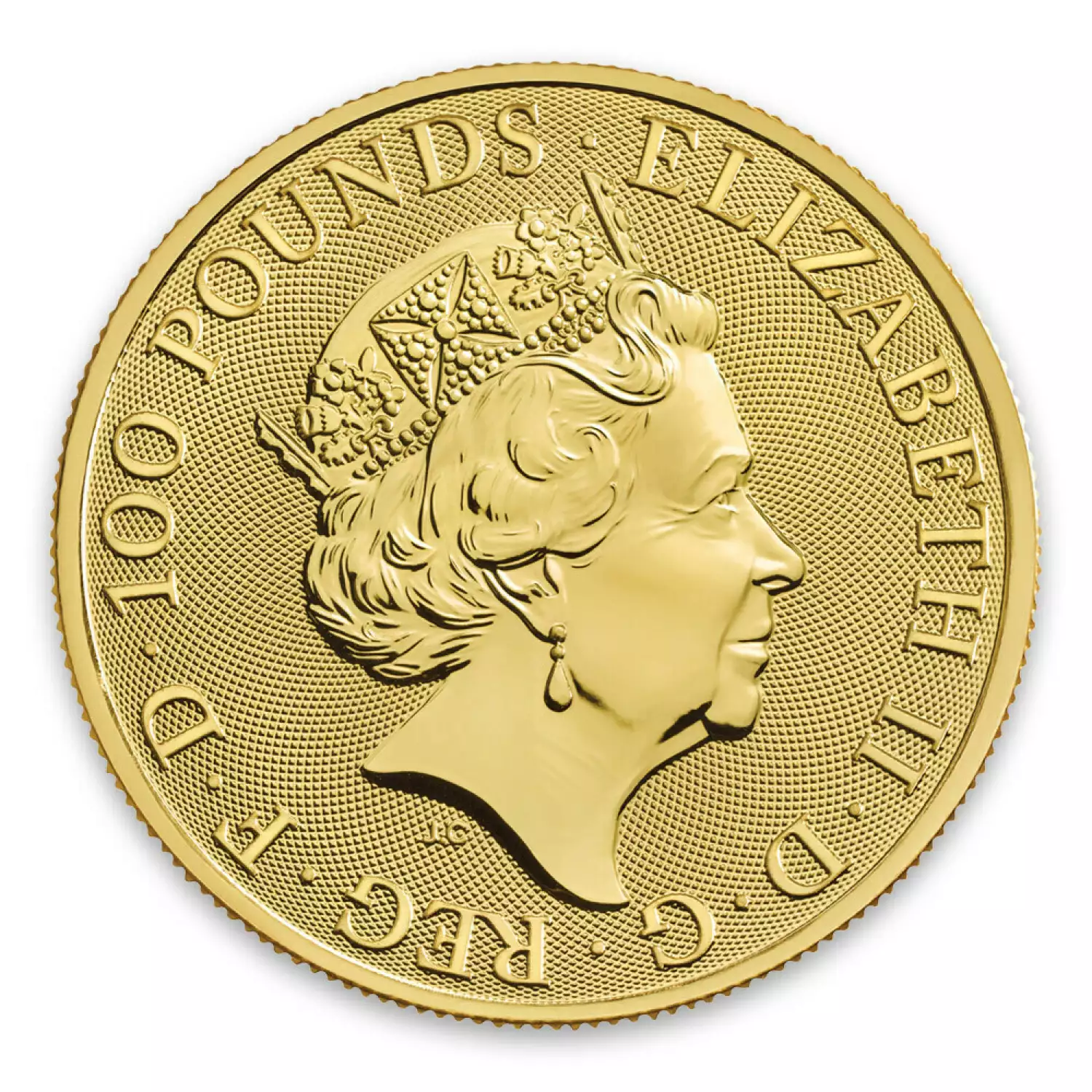 The 2020 1oz Gold Britain Queen's Beast: The White Horse Coin is made of .9999 fine gold and weighs 1 Troy oz. The 2020 1oz Gold Britain Queen's Beast: The White Horse has a limited mintage and it's the eighth coin from this collection. The coin is designed by Jody Clark and while the observe depicts her Majesty, Queen Elizabeth II, the reverse is facing the White Horse of Hanover with the Royal Arms in front of it.
