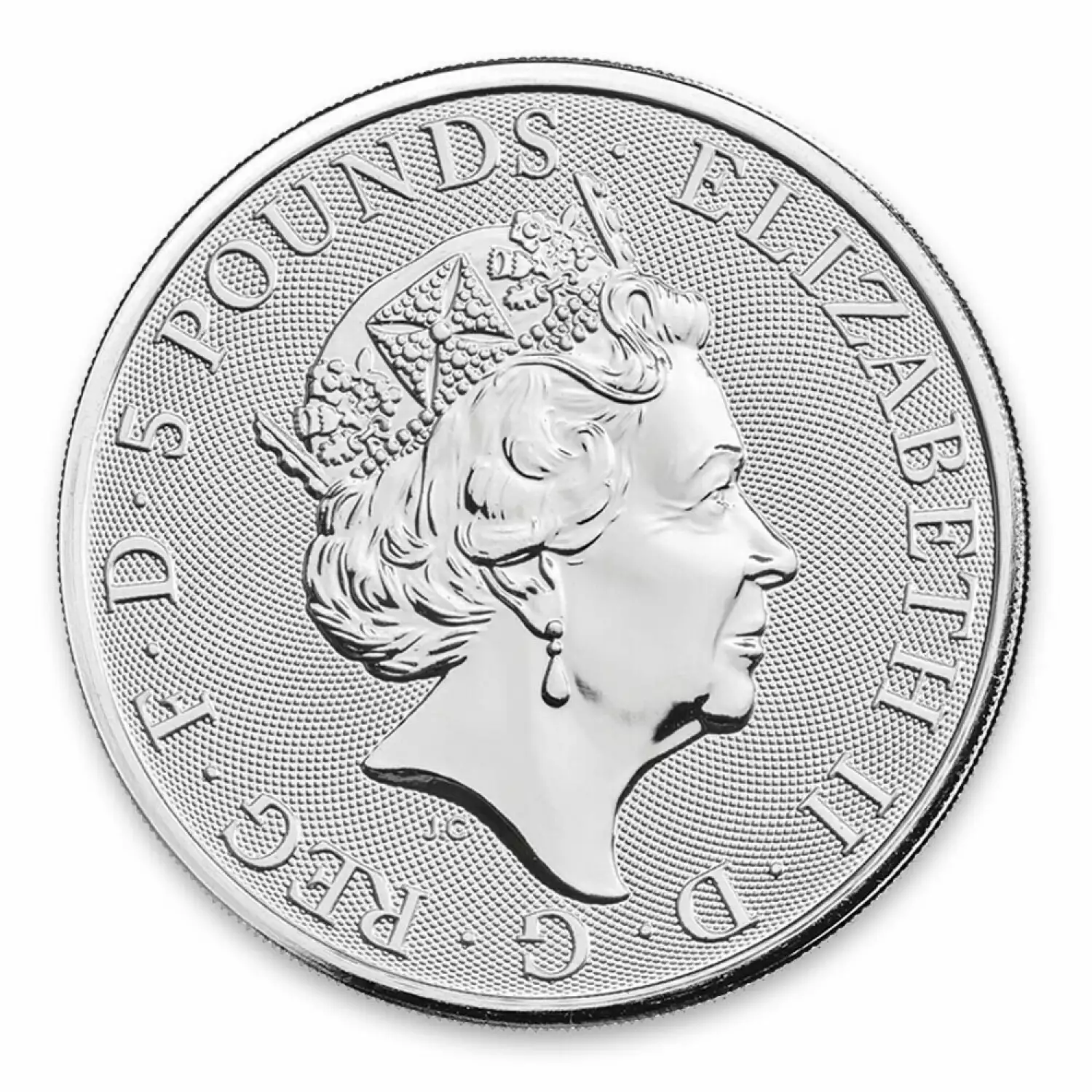 The 2021 2oz Britain Silver Queen's Beast: The White Greyhound of Richmond is the new silver coin released in the exciting new 2021 coin series. The Britain Queen's Beasts celebrate the British Monarch and the centuries of fascinating heraldry. This strikingly beautiful silver coin contains 2 oz of .9999 fine silver. Designed by Jody Clark, the reverse of this coin depicts the White Greyhound of Richmond along with the representative seal of the Tudors.