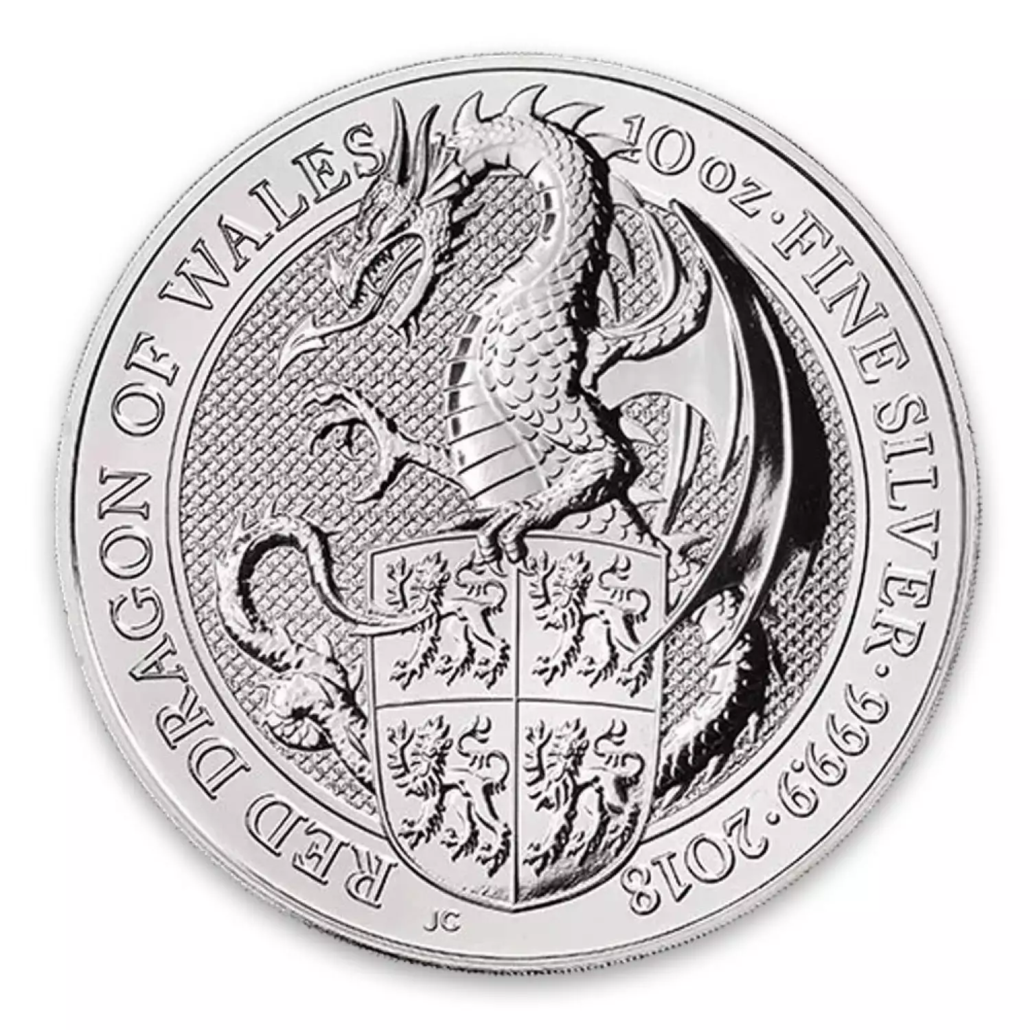 The 2018 10oz Britain Queen's Beast: The Dragon of Wales the third release in the Queen's Beasts series, featuring the Dragon of Wales.