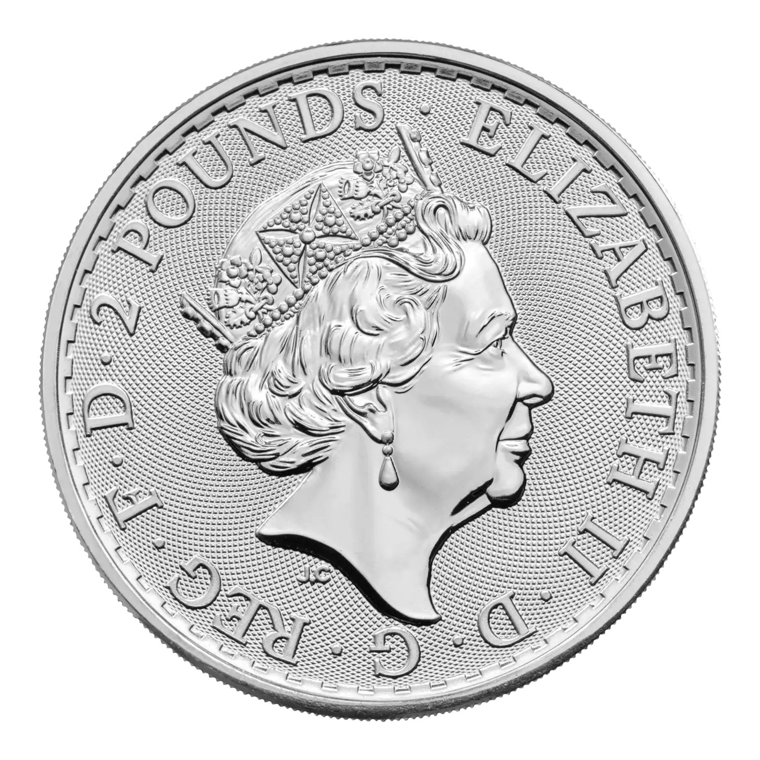 Britain's Silver Britannia Coin is one of the more popular bullion programs on the European continent. The obverse of the 1oz 2023 British Silver Britannia - Monkey Privy coin features the effigy of Her Majesty Queen Elizabeth II, along with the face value of 2 pounds. The reverse of the coin depicts the image of Britannia on the reverse.