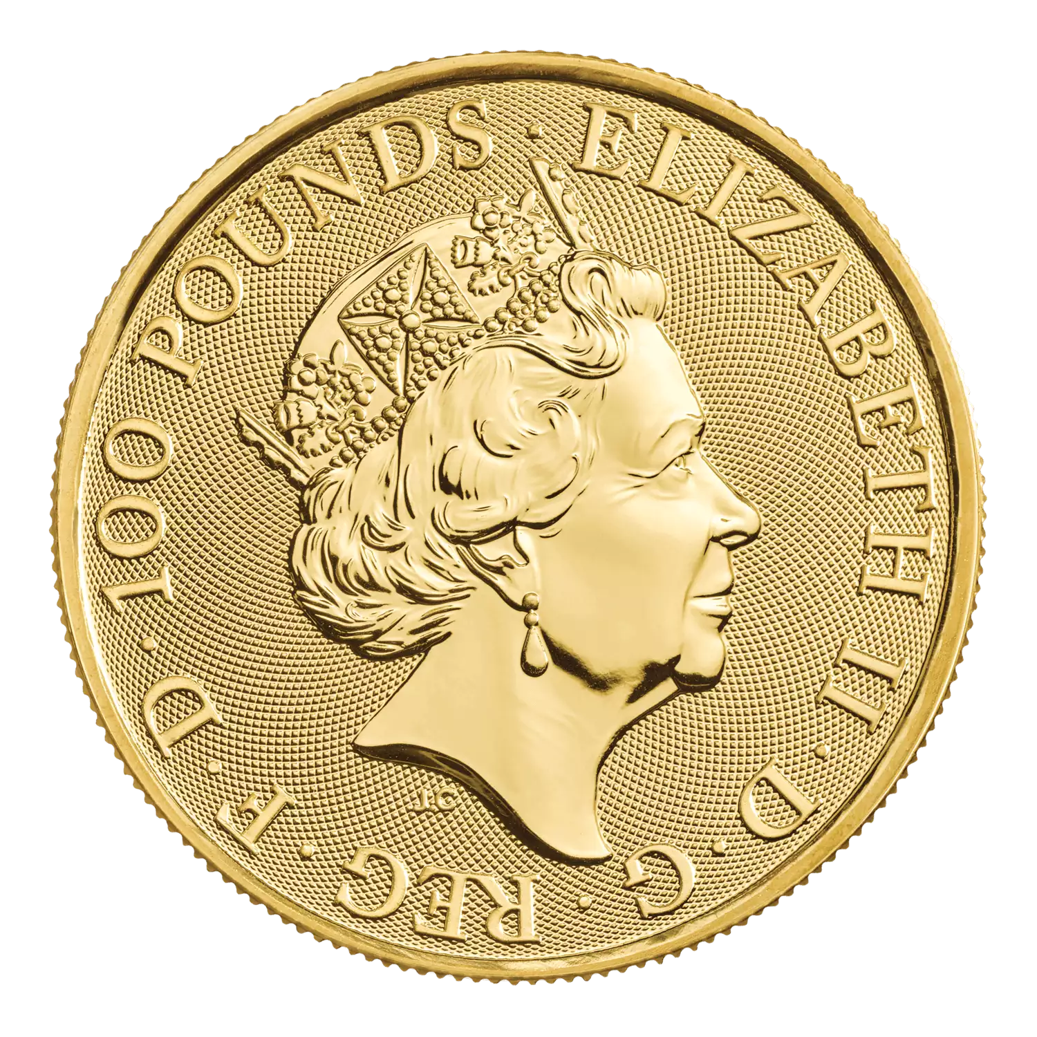 David Lawrence has captured the mythical yale on the reverse of the coin with a chainmail surface animation background texture providing additional security. The obverse of the coin features the fifth definitive coinage portrait of Her Majesty The Queen by Jody Clark.