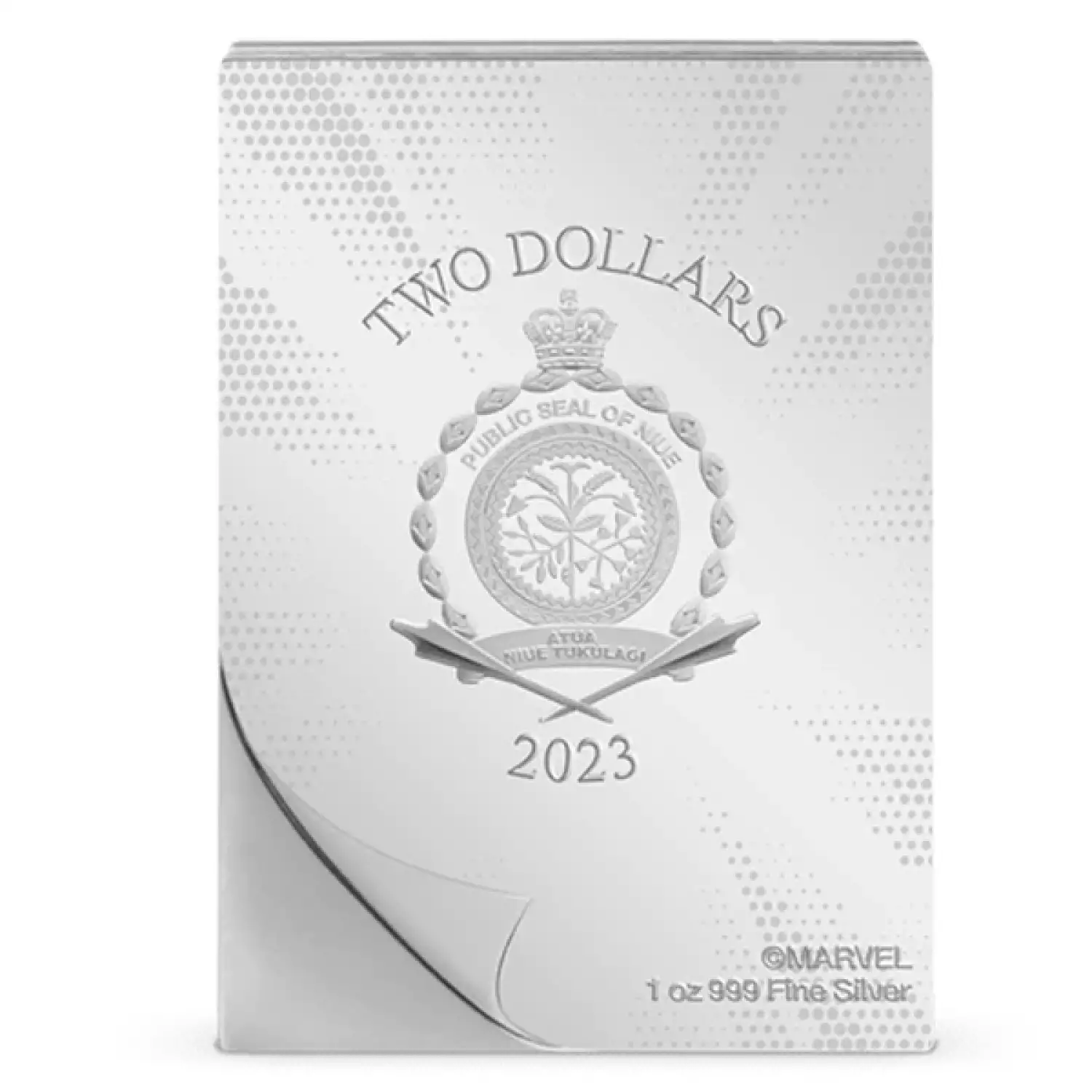 licensed, each piece is held in an awesome comic-themed box, custom-designed with a large window for displaying your coin. Printed on the back is a Certificate of Authenticity and the coin’s unique number in the mintage. Begin your Marvel collection today!