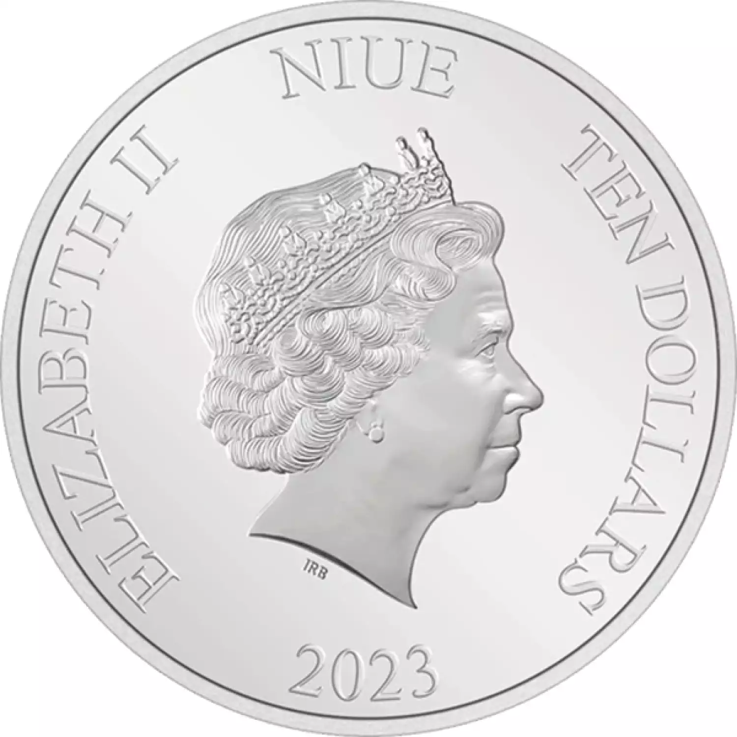 An impressive 60mm in diameter, this special piece features Bugs Bunny front and centre, in colour, and seen wearing traditional Lunar New Year clothing. Behind detailed engravings including Bugs Bunny and Lola Bunny, have been frosted for contrast. A mirror-like finish borders the coin to further enhance the design. Of course, the 2023 year has also been added to this celebratory coin. As this is a legal tender coin, the Ian Rank-Broadley effigy of Her Majesty Queen Elizabeth ll can be found on the obverse.