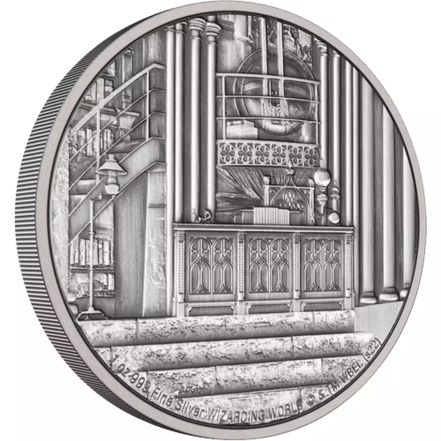 Created in partnership with Warner Bros. Consumer Products, this 1oz silver coin showcases Dumbledore’s office at Hogwarts™ from the HARRY POTTER™ film franchise. It is fully engraved and antiqued and includes some relief to add extra charm.