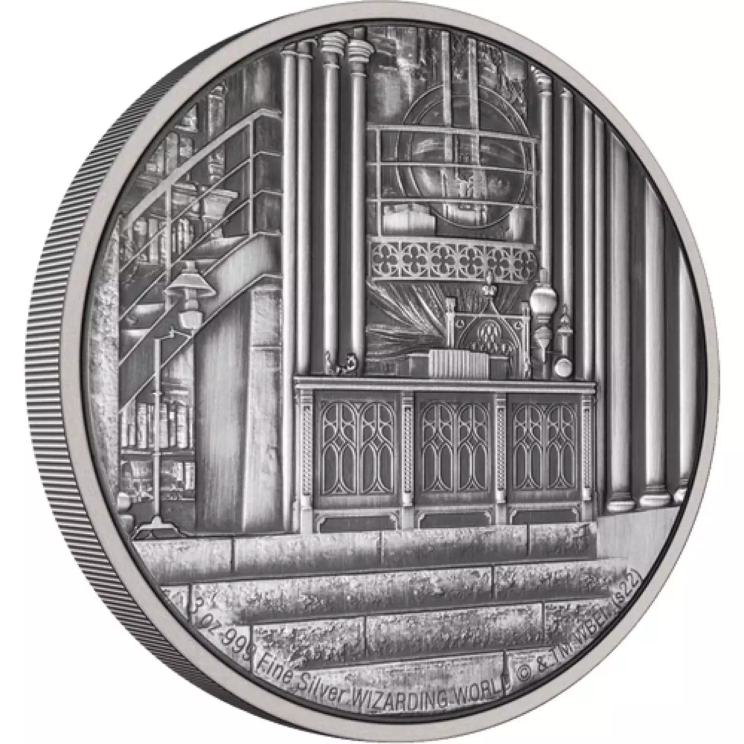 This 3oz silver coin presents Dumbledore’s office in the Hogwarts™ Castle from the HARRY POTTER™ film franchise. It is fully engraved and antiqued, with light relief added to enhance the design. It has an impressive 55mm diameter for better viewing of the room’s interior. It’s sure to stand out in your collection!