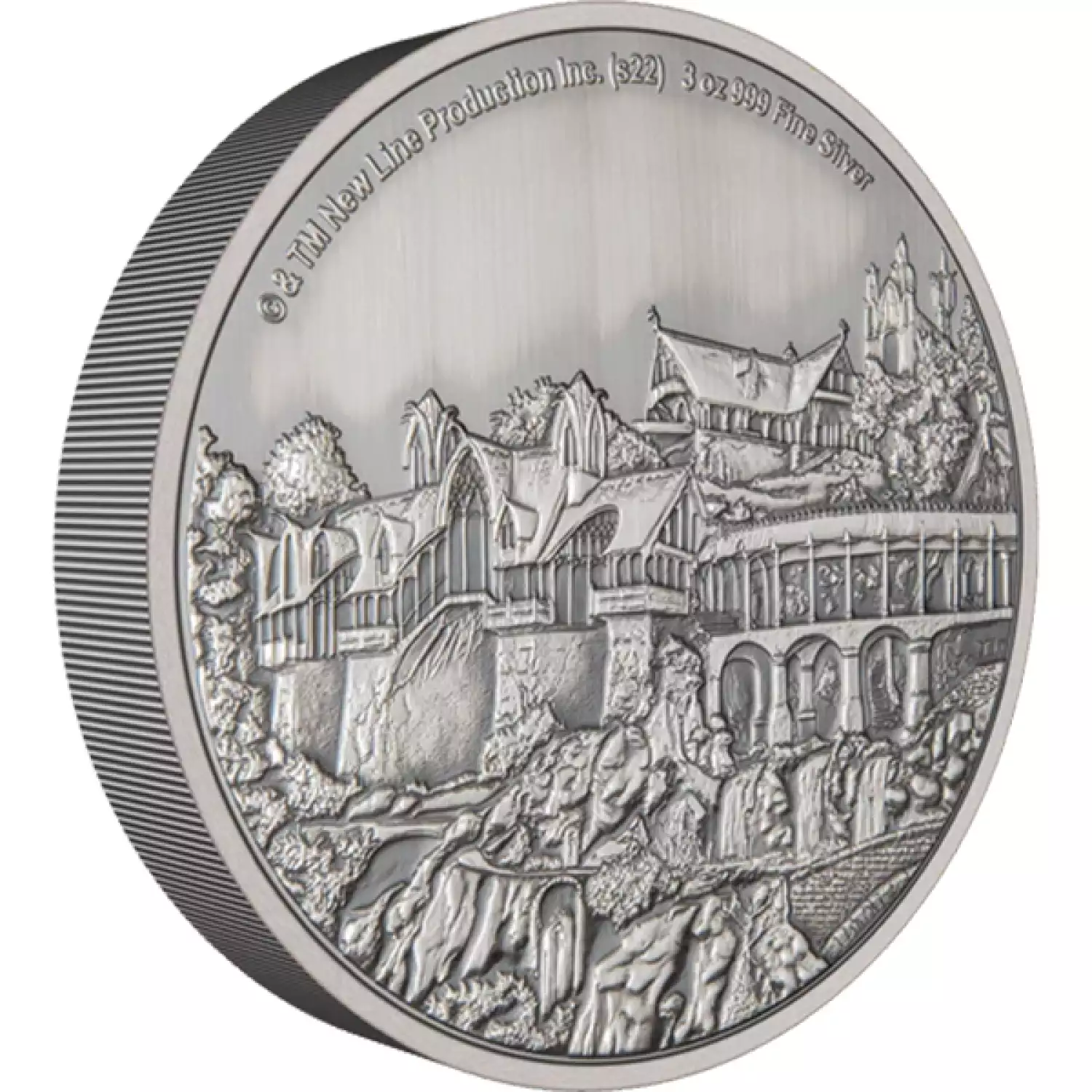 Created in partnership with Warner Bros. Consumer Products, this 3oz silver coin presents the House of Elrond - the magical elven sanctuary, Rivendell, from THE LORD OF THE RINGS™. It is fully engraved and antiqued, with relief added to enhance this beautiful design.