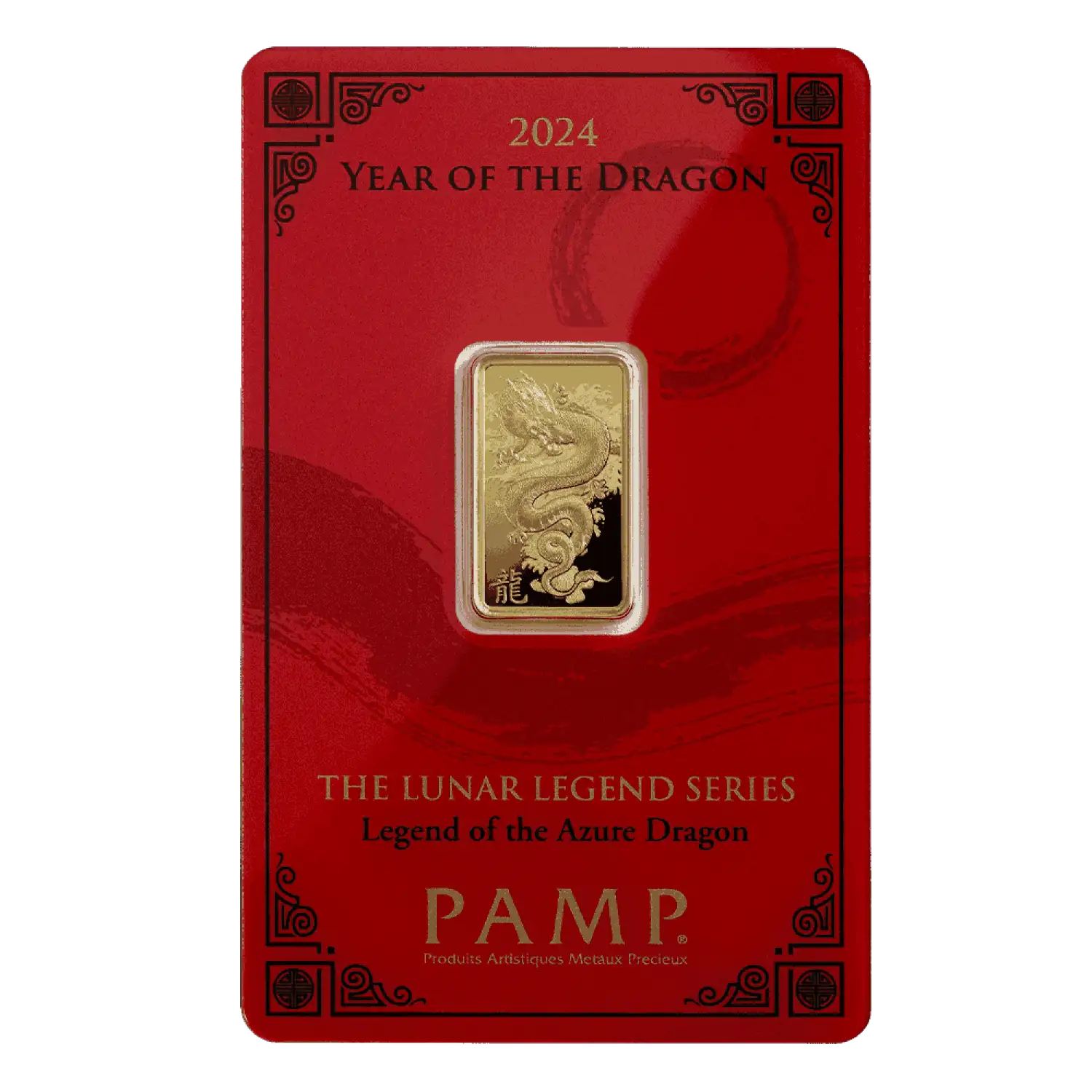 Introducing our latest series of meticulously crafted bullion bars, each one commemorating the Chinese Lunar New Year, starting with the auspicious 2024 Year of the Dragon. These bars not only pay homage to this significant annual celebration but also unveil captivating legends associated with the 12 animals of the Chinese Zodiac, commencing with the captivating "Legend of the Azure Dragon."
