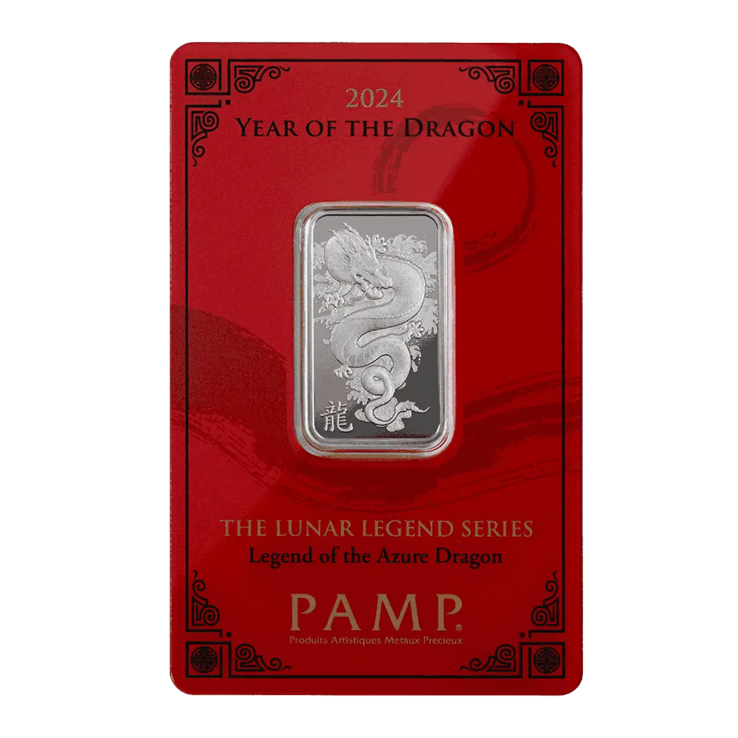 Each 2024 10g PAMP Silver Bar - Lunar Dragon is composed of 10 grams of .999 pure silver.