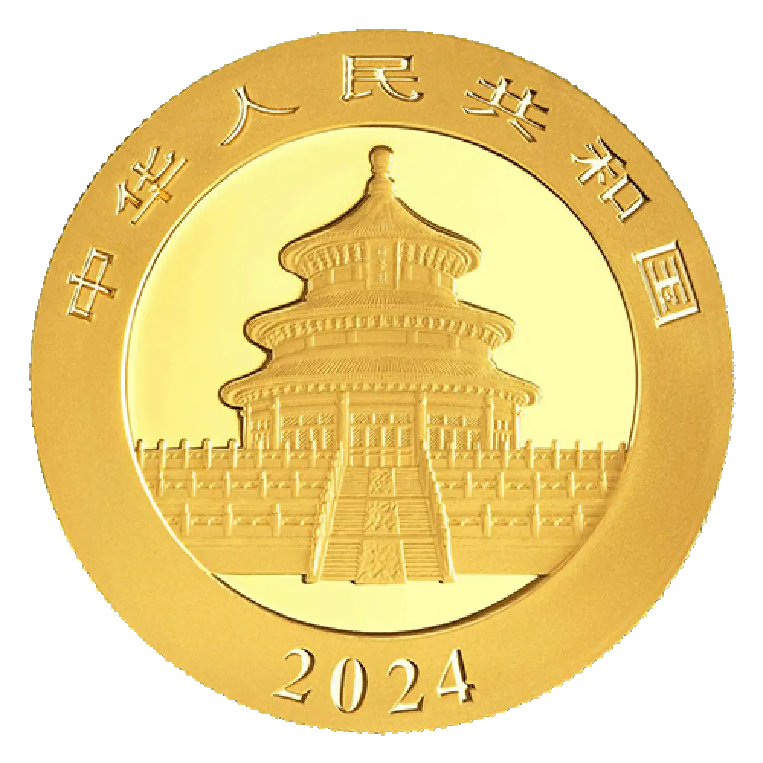 The 2024 30g Chinese Gold Panda coin is minted as .999 fine gold, 24 karat. The Chinese Gold Panda Coins differ from most other common gold bullion in two ways. First, the reverse design of the endangered panda bear changes annually (except for 2001 and 2002 which feature the same design) and second, each coin is minted as a limited edition. First minted in 1982, the Chinese Gold Panda Bullion Coin was greeted with great interest among collectors. This interest peaked in 1987 after which lower mint figures resulted in limited availability. The design of the Panda changes each year.