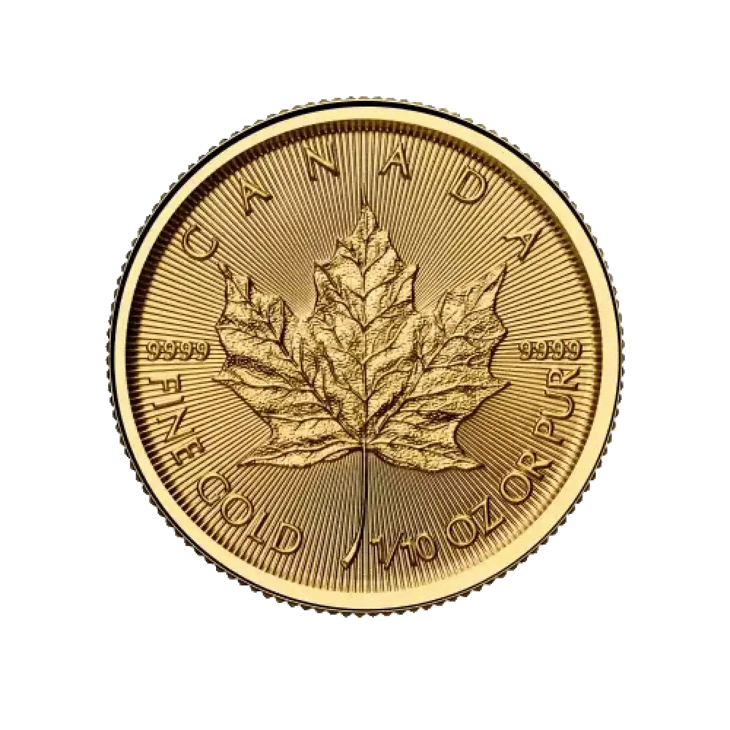 Struck from 1/10 troy ounce of .9999 fine gold, this coin boasts a remarkable level of purity, ensuring its value is protected and preserved for generations to come. The Duplicate 2025 1/10oz Canadian Gold Maple Leaf is carefully crafted to replicate the exact same design, weight, and purity as the official Canadian Gold Maple Leaf, making it a popular choice among bullion enthusiasts and investors alike.