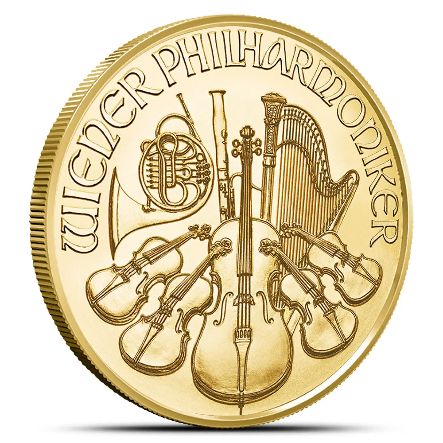 The Philharmonic's obverse features the majestic Great Organ of the Golden Hall in Vienna's Musikverein, a masterpiece of Austrian cultural heritage. The reverse showcases a harmonious assembly of musical instruments, celebrating the world-renowned Vienna Philharmonic Orchestra. The coin's design is a symphony of intricate details, showcasing the Austrian Mint's mastery of gold coin production.