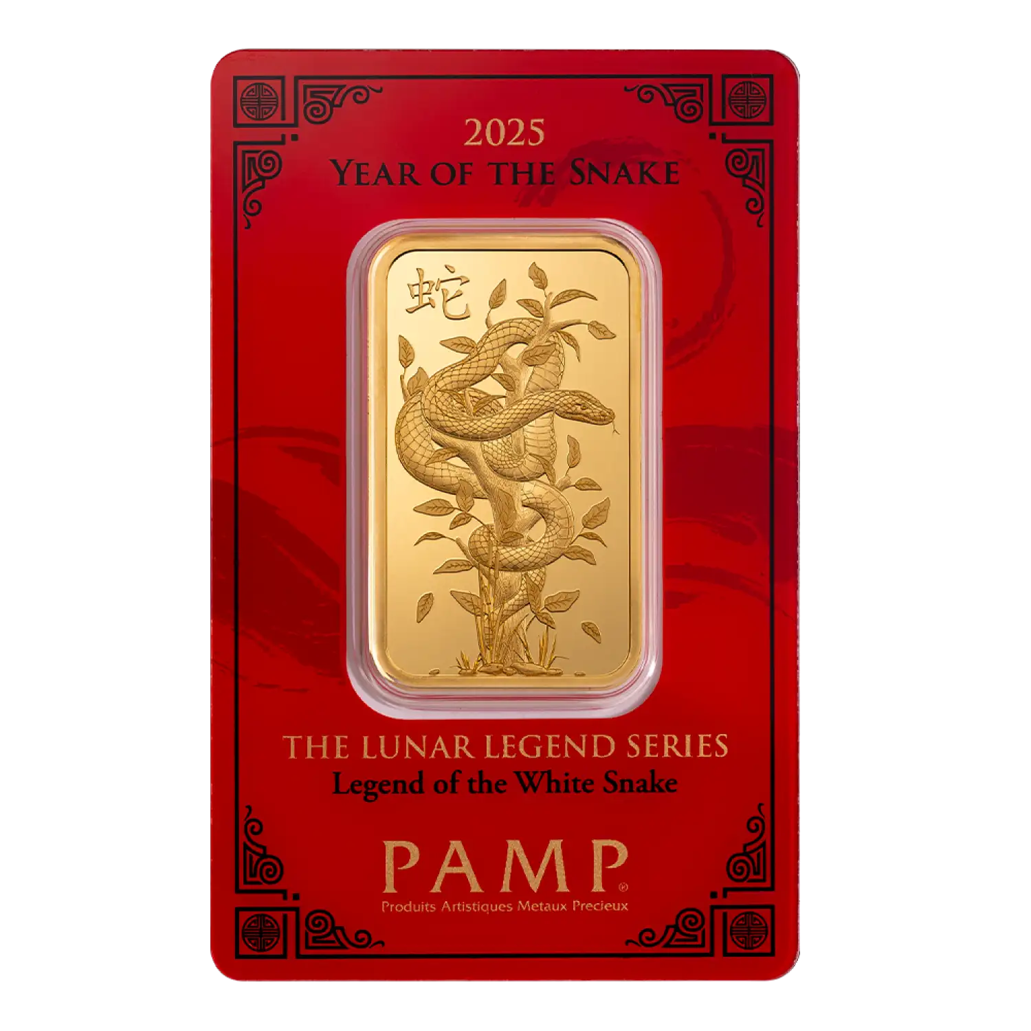 Take advantage of this exceptional opportunity to own a piece of artistic gold bullion, perfect for collectors and investors alike. The 2025 1oz PAMP Gold Bar - Year of the Snake is a limited-edition release, so be sure to secure yours today!