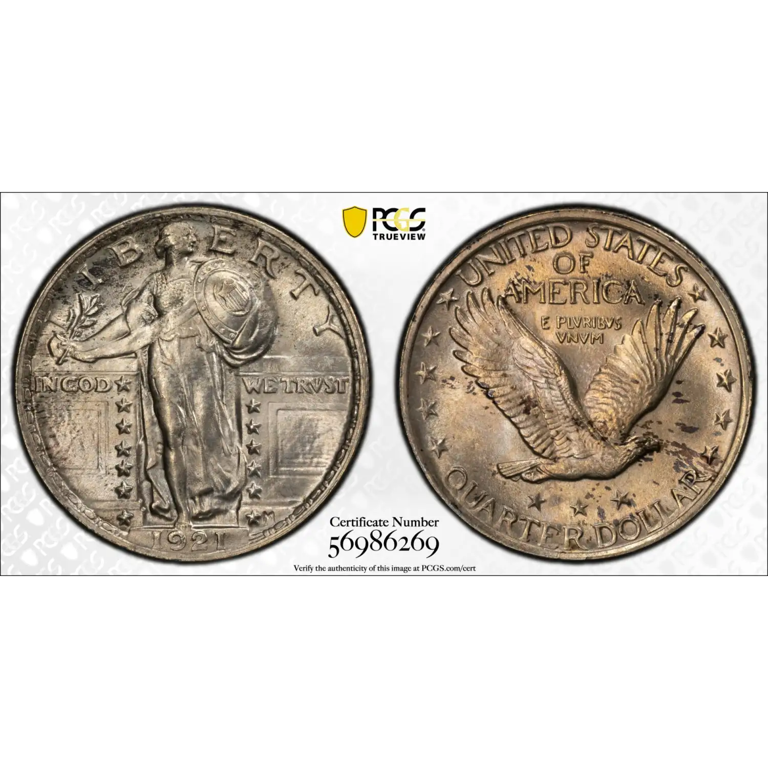 1921 P Quarter Dollars Standing Liberty Quarter PCGS MS-65 Gold Shield