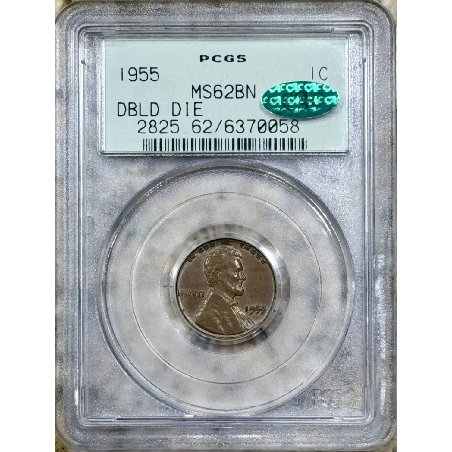 1955 1C Lincoln Cent PCGS MS62BN Doubled Die Obverse OGH