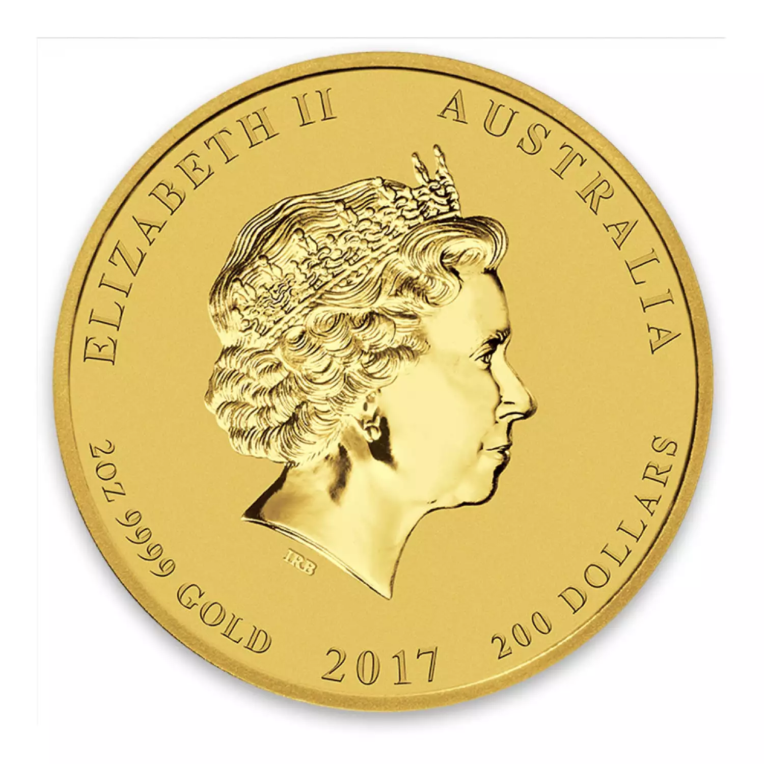 The magnificent 2017 2 oz Australian Perth Mint Gold Lunar II: Year of the Rooster coin is the 10th coin of the popular Lunar Series features a Rooster standing on one feet in a field of bamboo and leaves. This bullion coin appeals to investors and collectors alike due to its weight, high-quality minting and pure gold content.