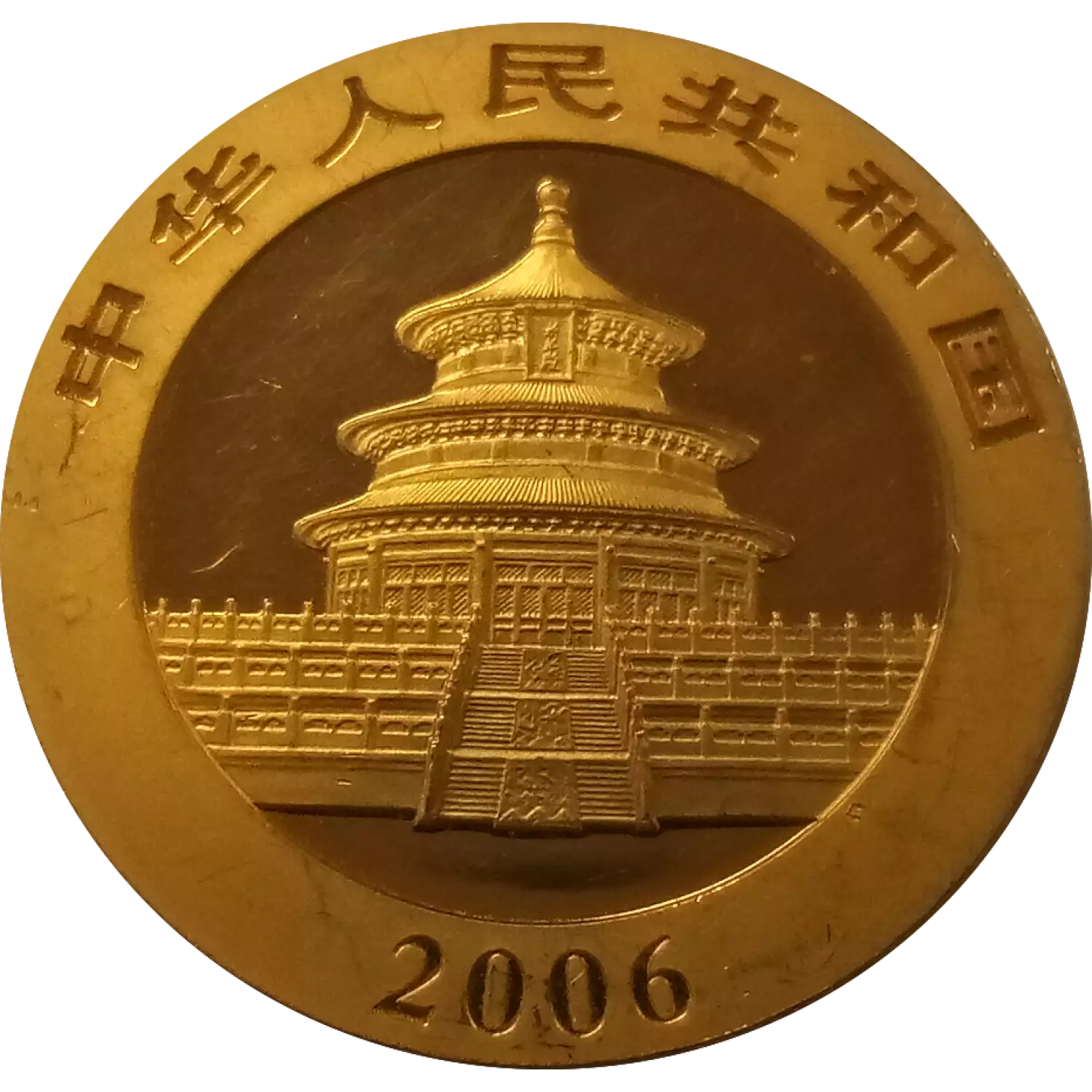 The 2006 Chinese Gold Panda coin is minted as .999 fine gold, 24 karat.