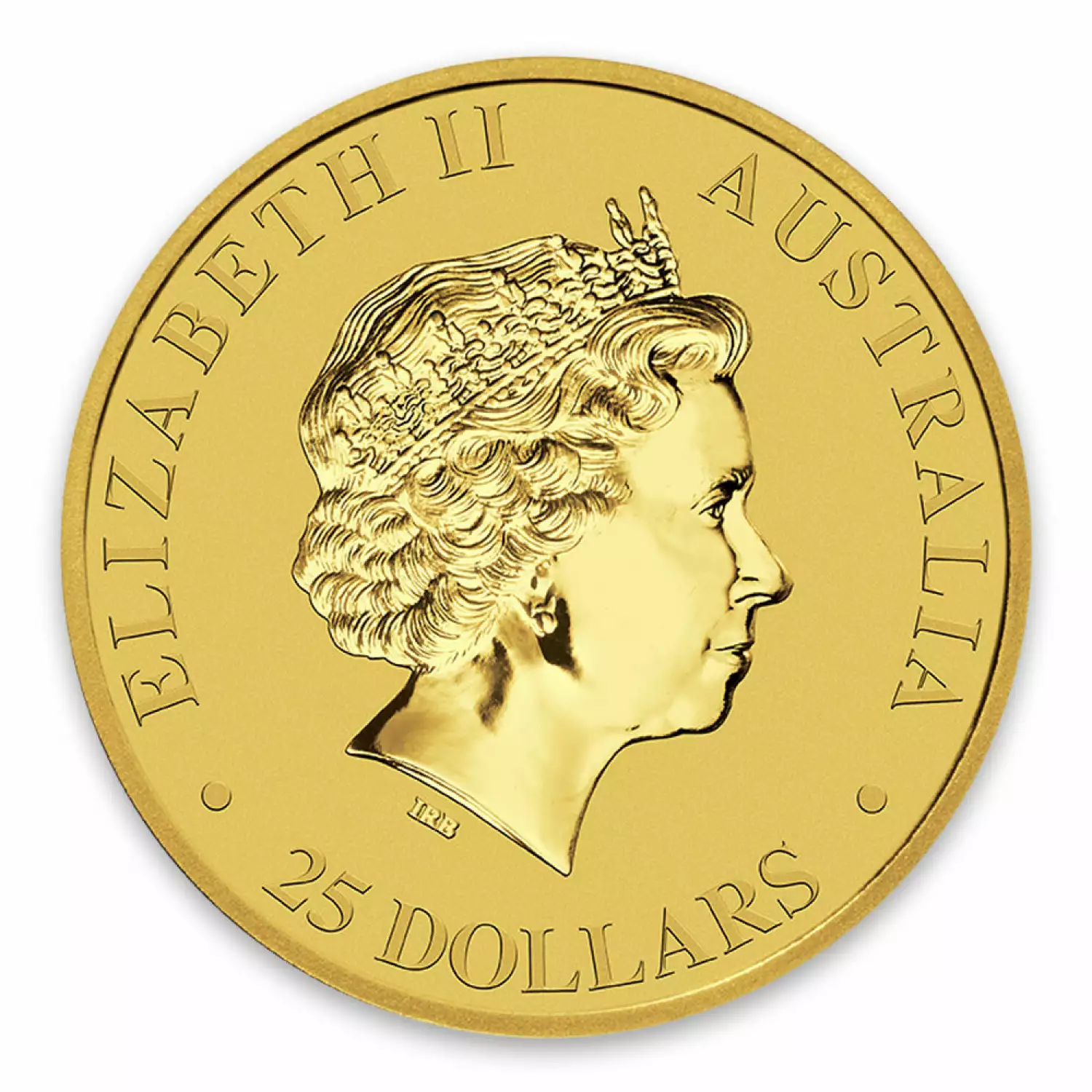 The Australian Nugget / Kangaroo coins are internationally recognized popular bullion coins produced from the Perth Mint. These coins come in five different sizes; 1 kg, 1 oz, 1/2 oz, 1/4 oz, and 1/10 oz which provides numerous options for buyers. These low mintage coins are eligible for Precious Metals IRAs. The obverse of the Australian Gold Kangaroo bears a portrait of Queen Elizabeth II. The reverse has undergone changes in the design since the coin's release.