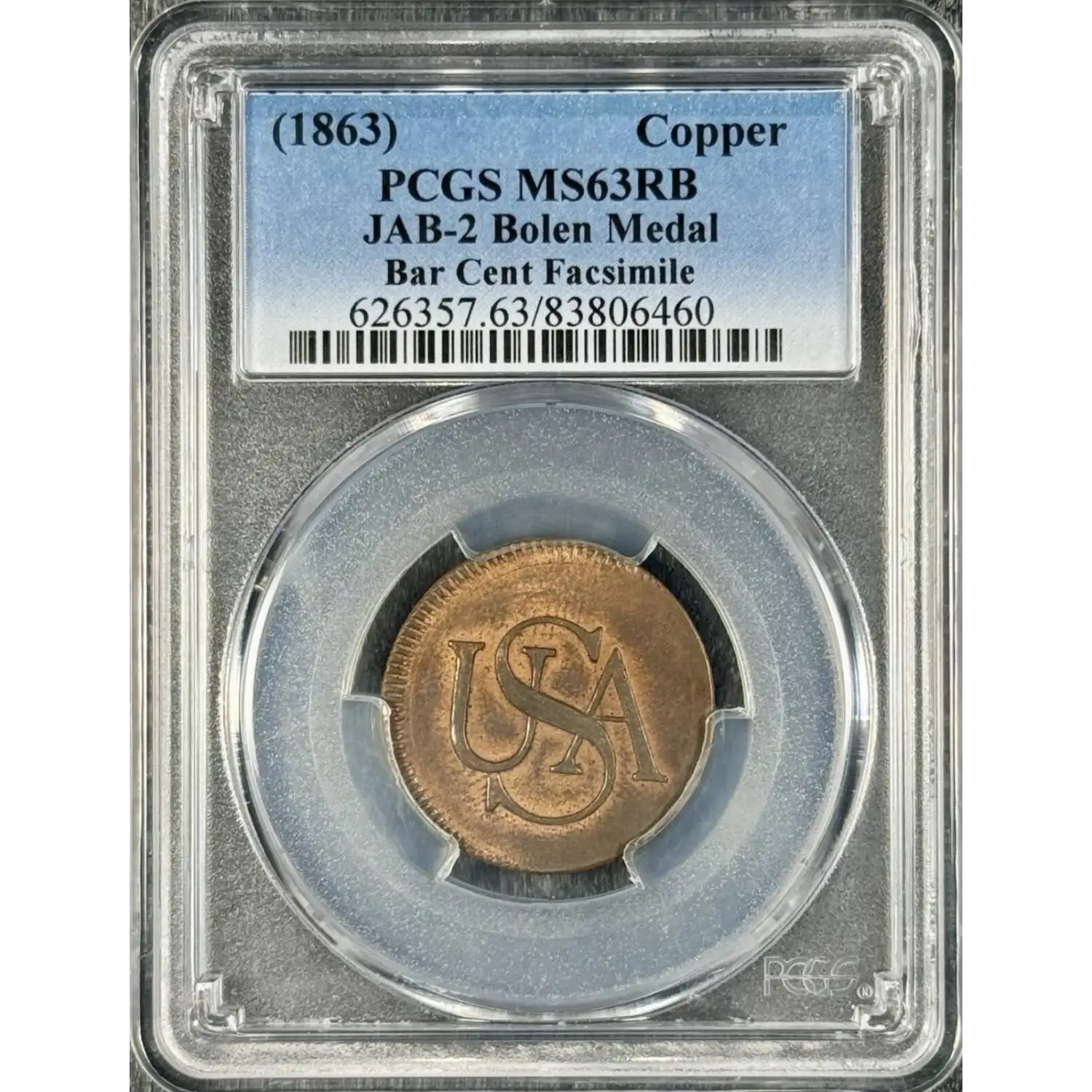 1863 JAB-2 Bolen Medal Copper Bar Cent Facsimile PCGS MS63RB