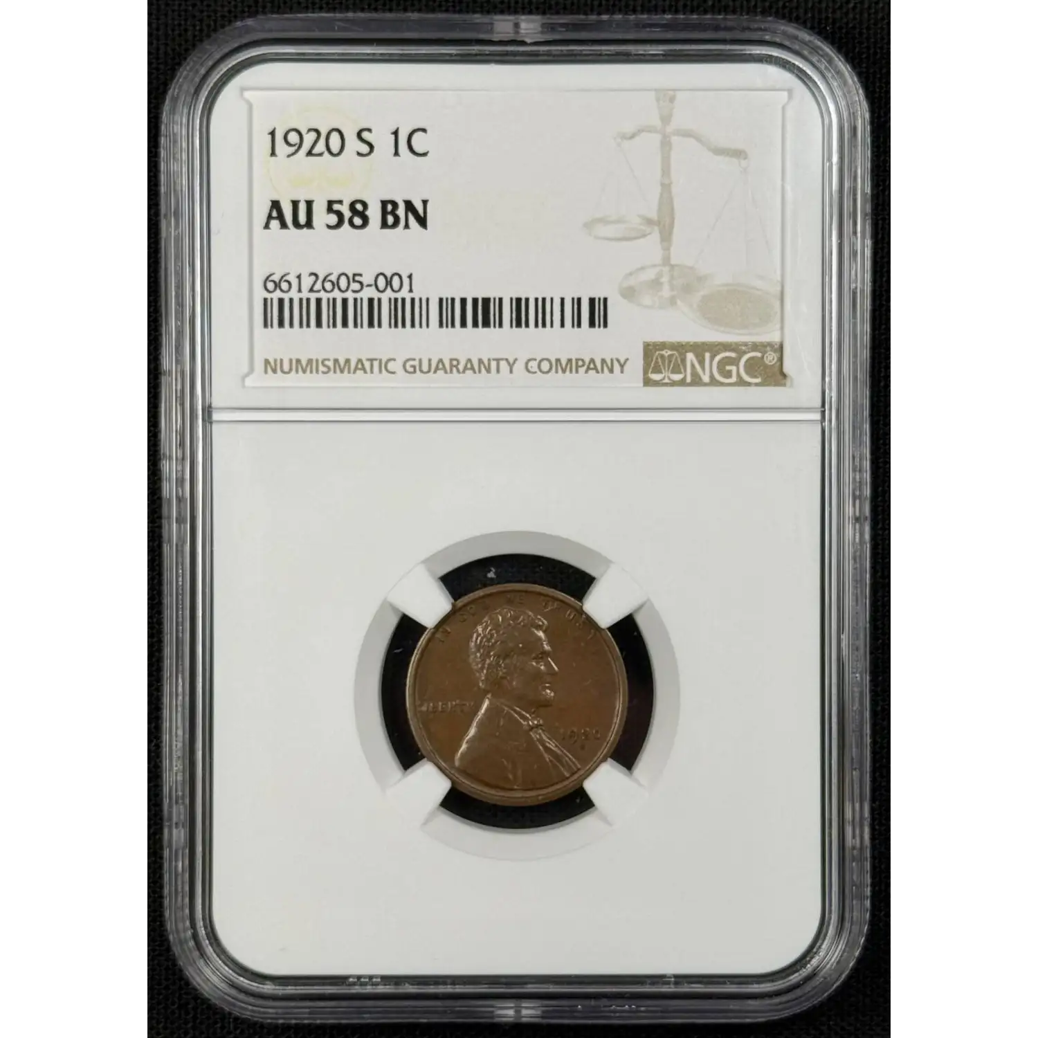 1920-S Small Cents Lincoln, Wheat Ears Reverse NGC AU-58