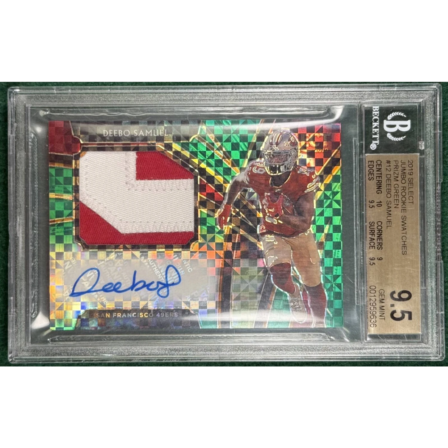 2019 Panini Deebo Samuel Prizm Green #12 Rookie Patch Auto