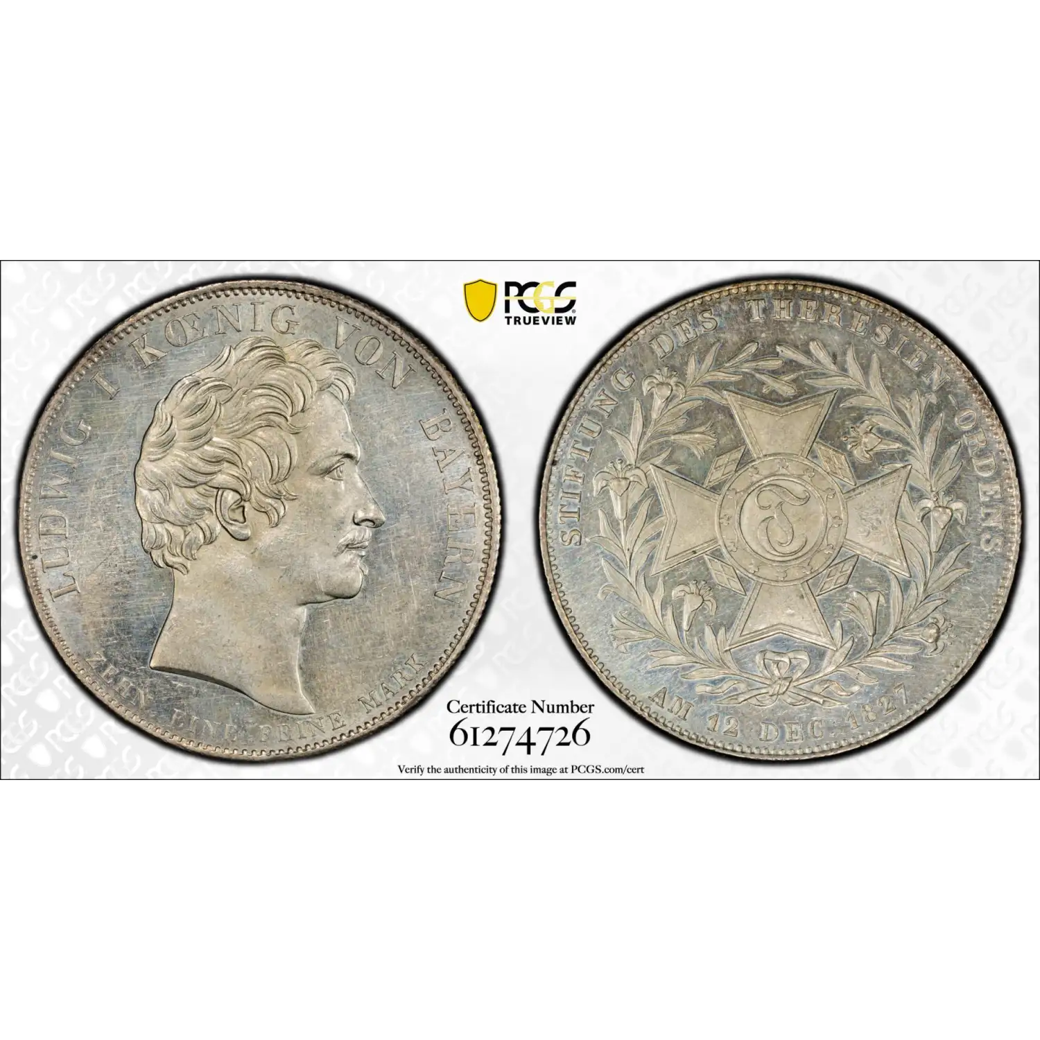 1827 German States Bavaria P Thaler KM-Pn4 PCGS SP61