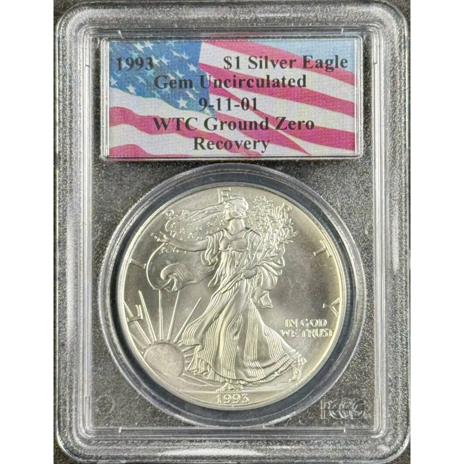 1993 $1 SIlver Eagle PCGS Gem Uncirculated 9-11-01 WTC Ground Zero Recovery