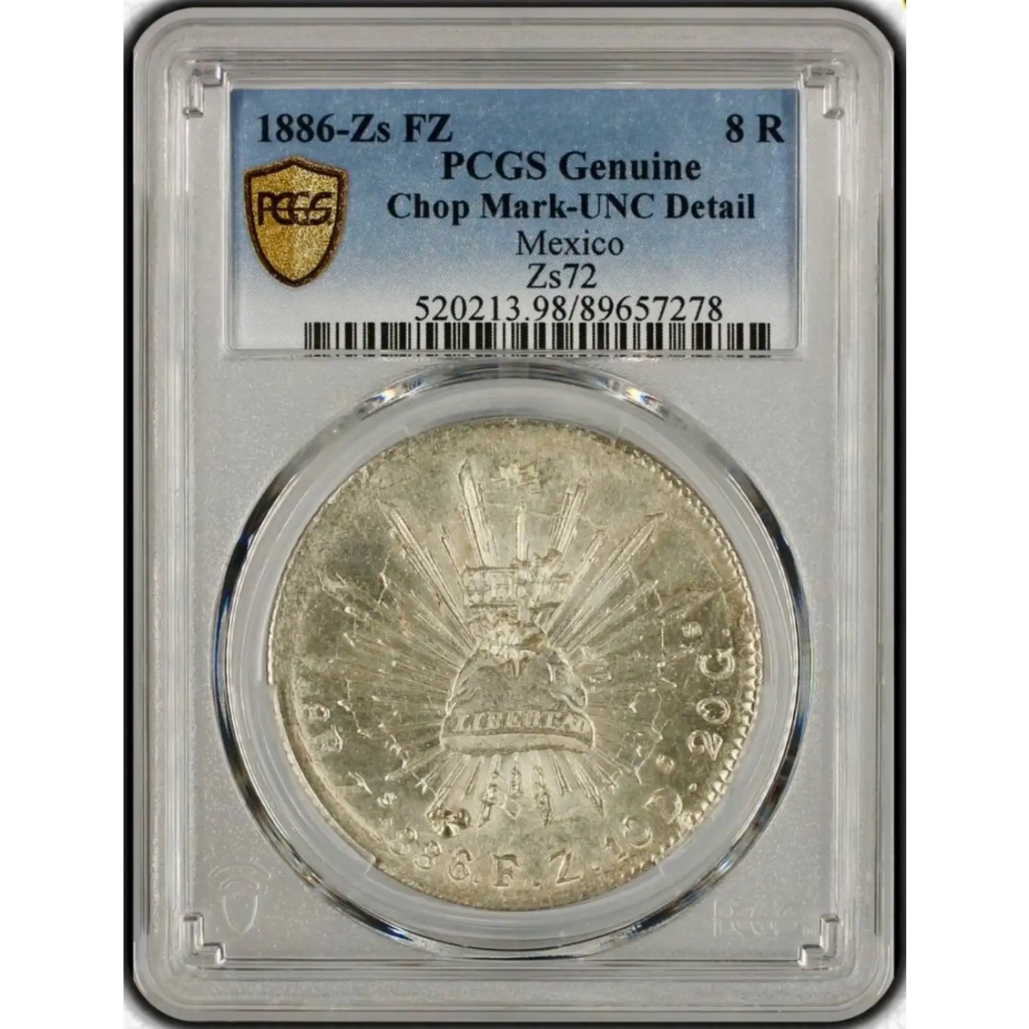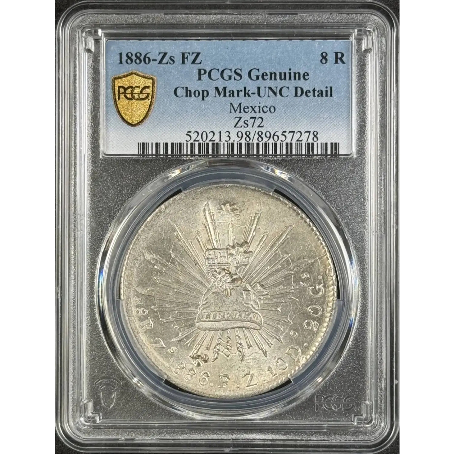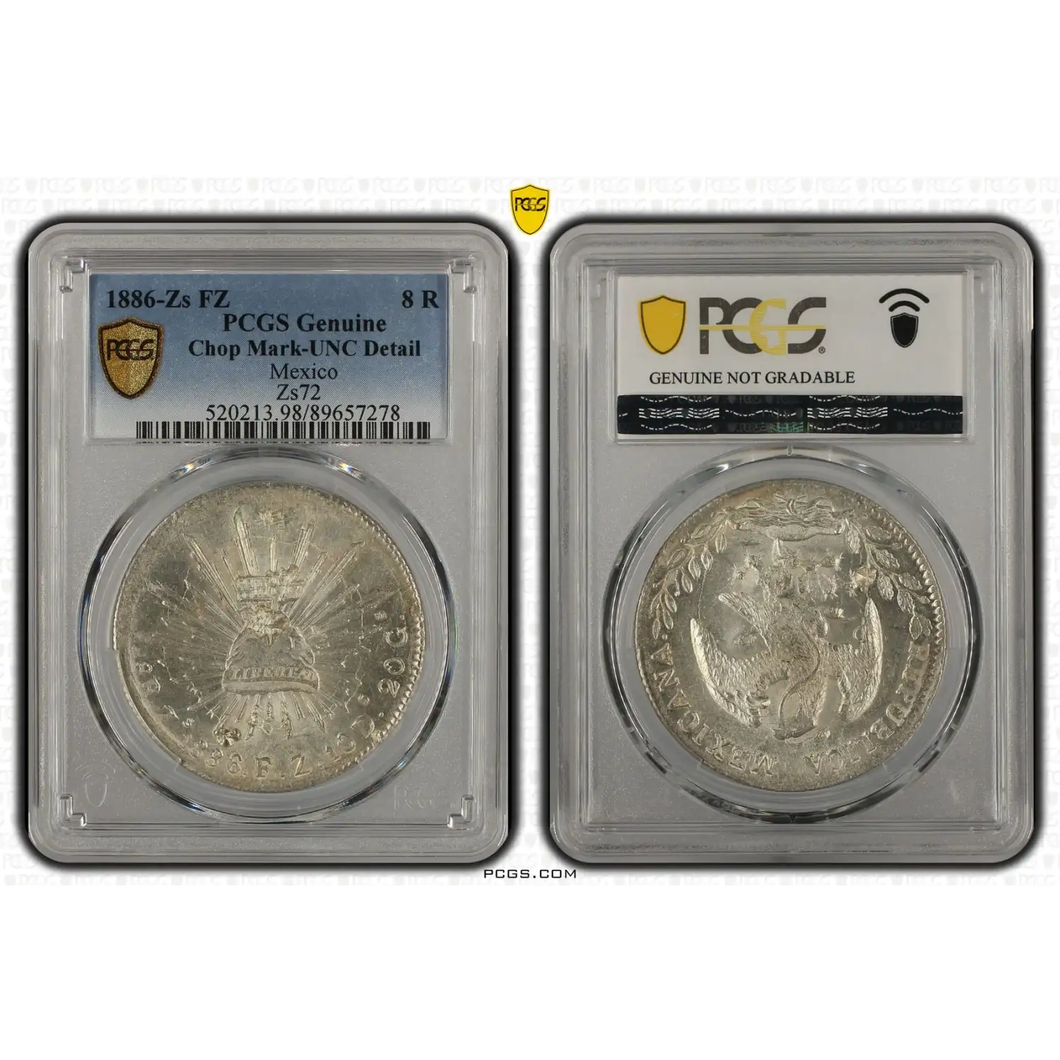1886-Zs FZ 8 R PCGS Genuine Chop Mark- UNC Detail Mexico Zs72