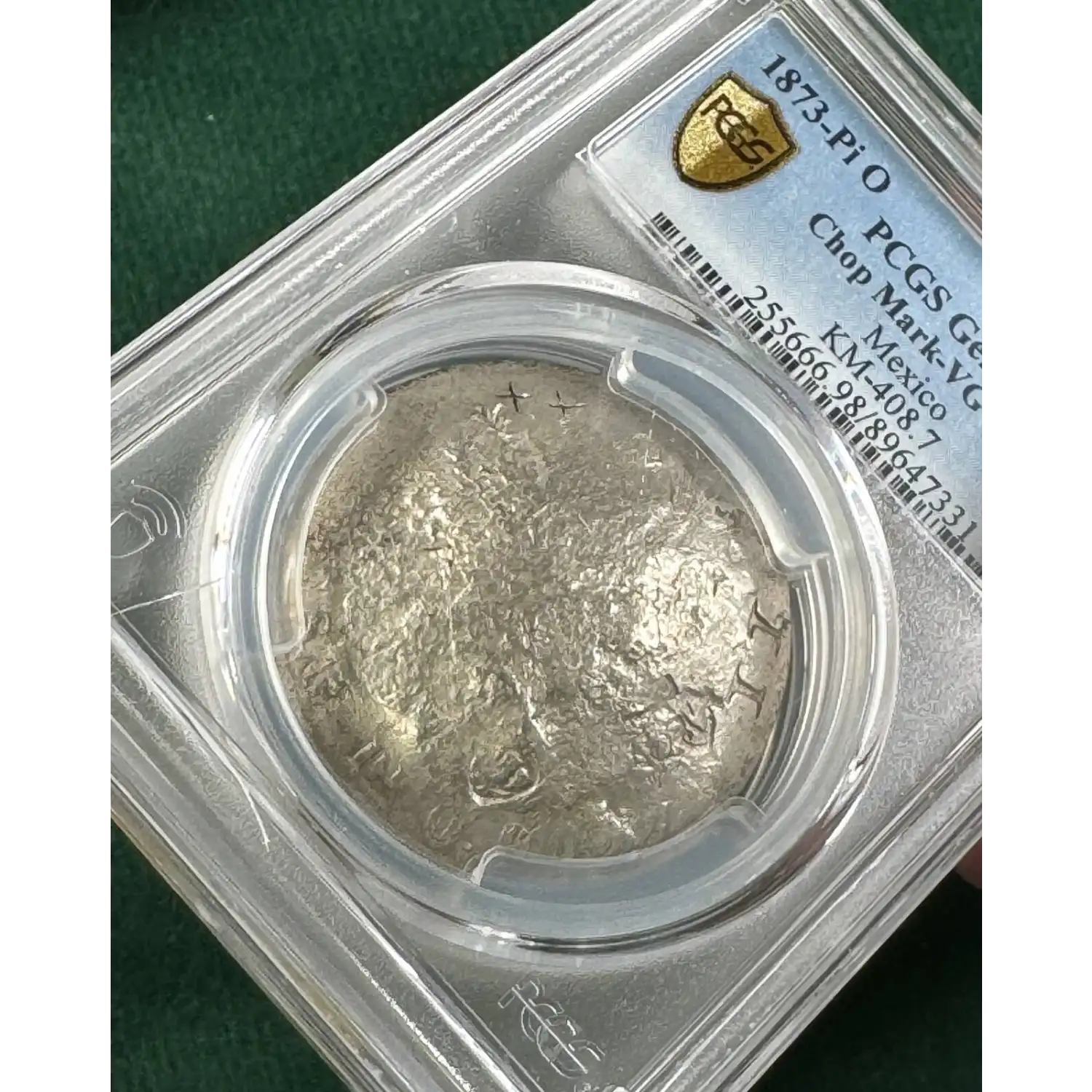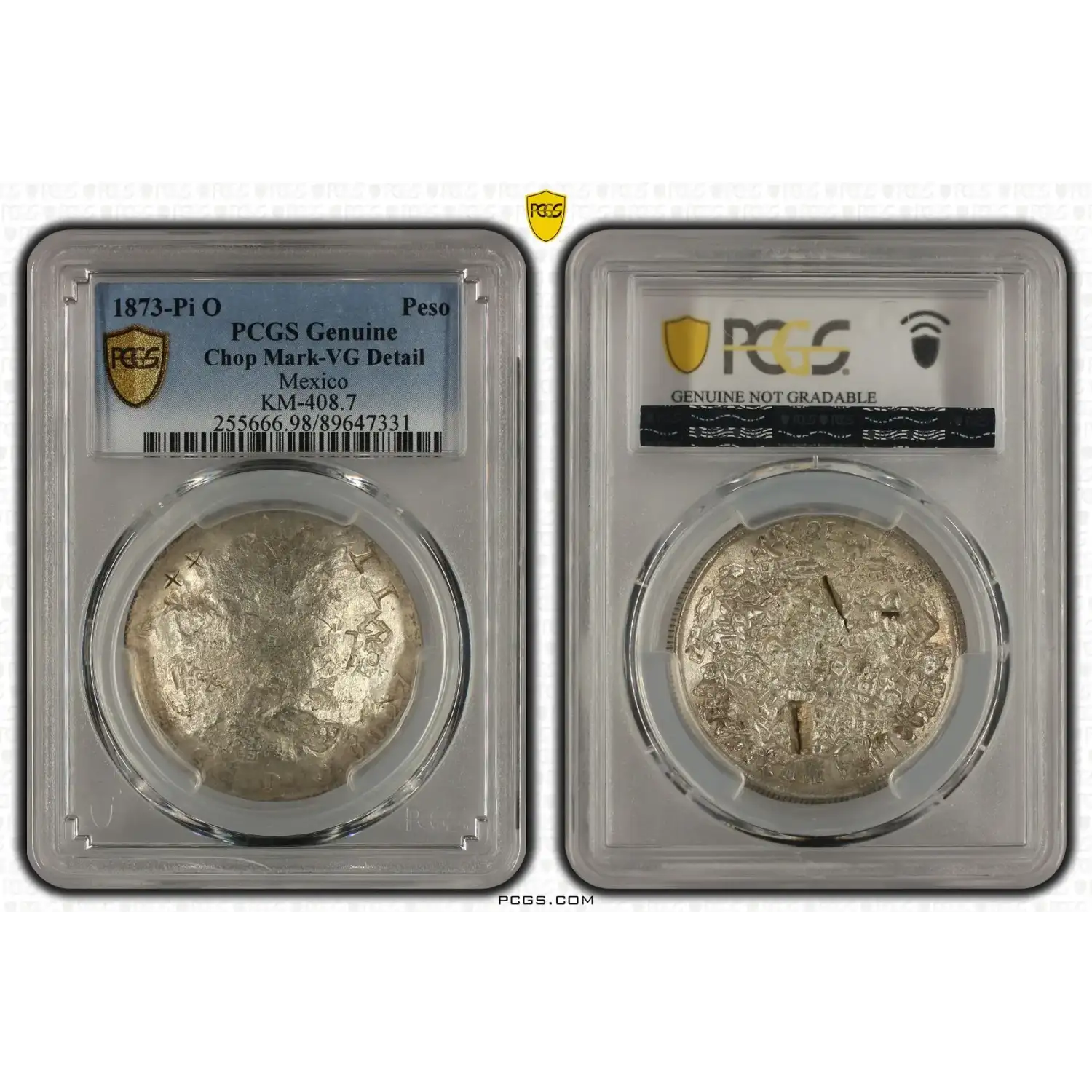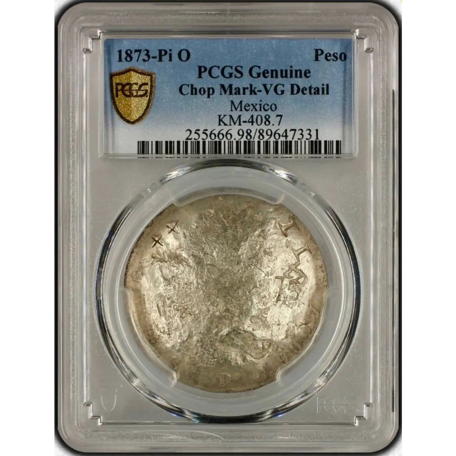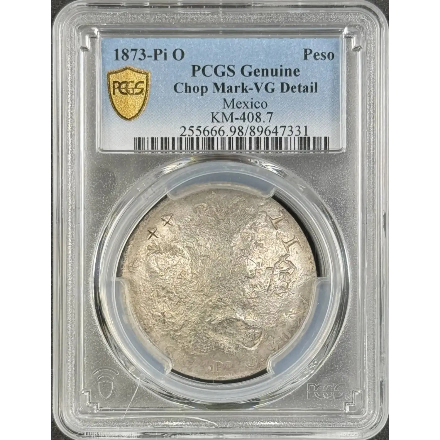 1873-Pi O Peso PCGS Chop Mark-VG Detail Mexico KM-408.7