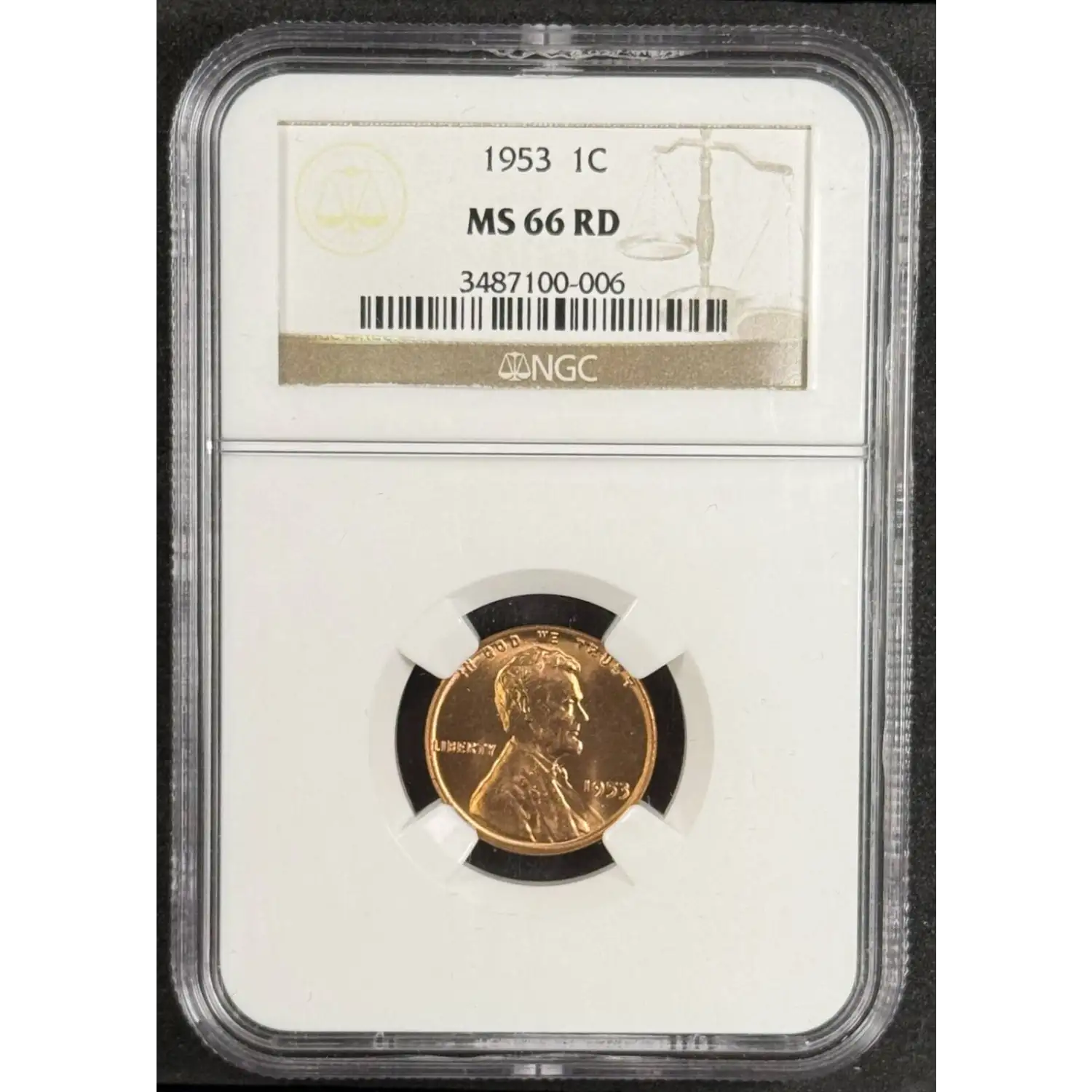 1953 Small Cents Lincoln, Wheat Ears Reverse NGC MS-66 RD