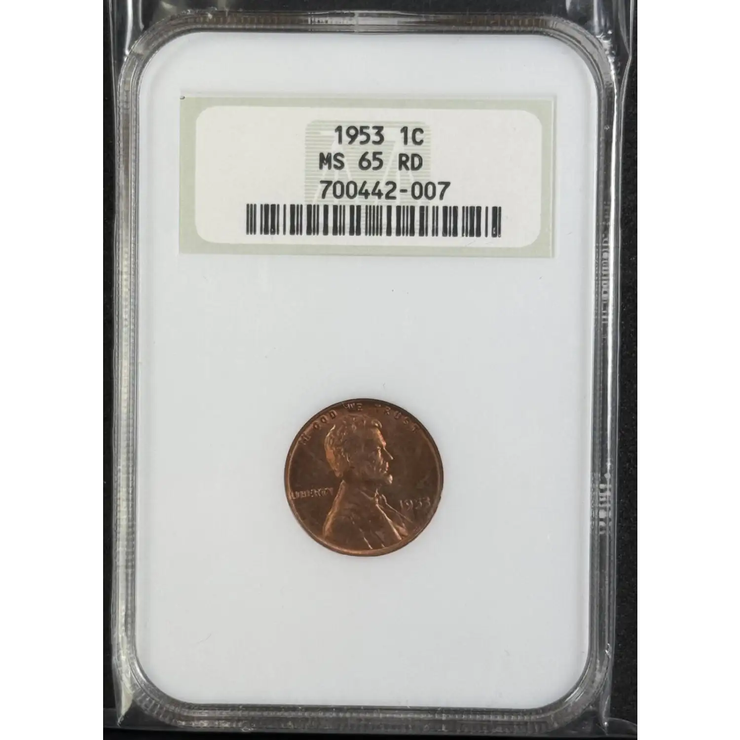 1953 1C Lincoln Cent NGC MS 65 RD Fatty Holder
