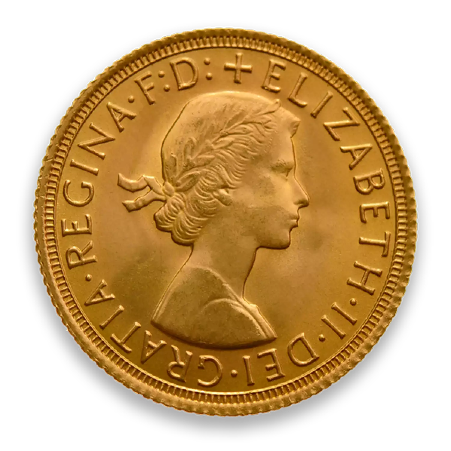 Each British Gold ½ Sovereign contains 0.1177 troy ounce of gold. These gold coins are at the British Royal Mint and other Commonwealth Mints.This gold coin has an iconic design desired by many gold investors.